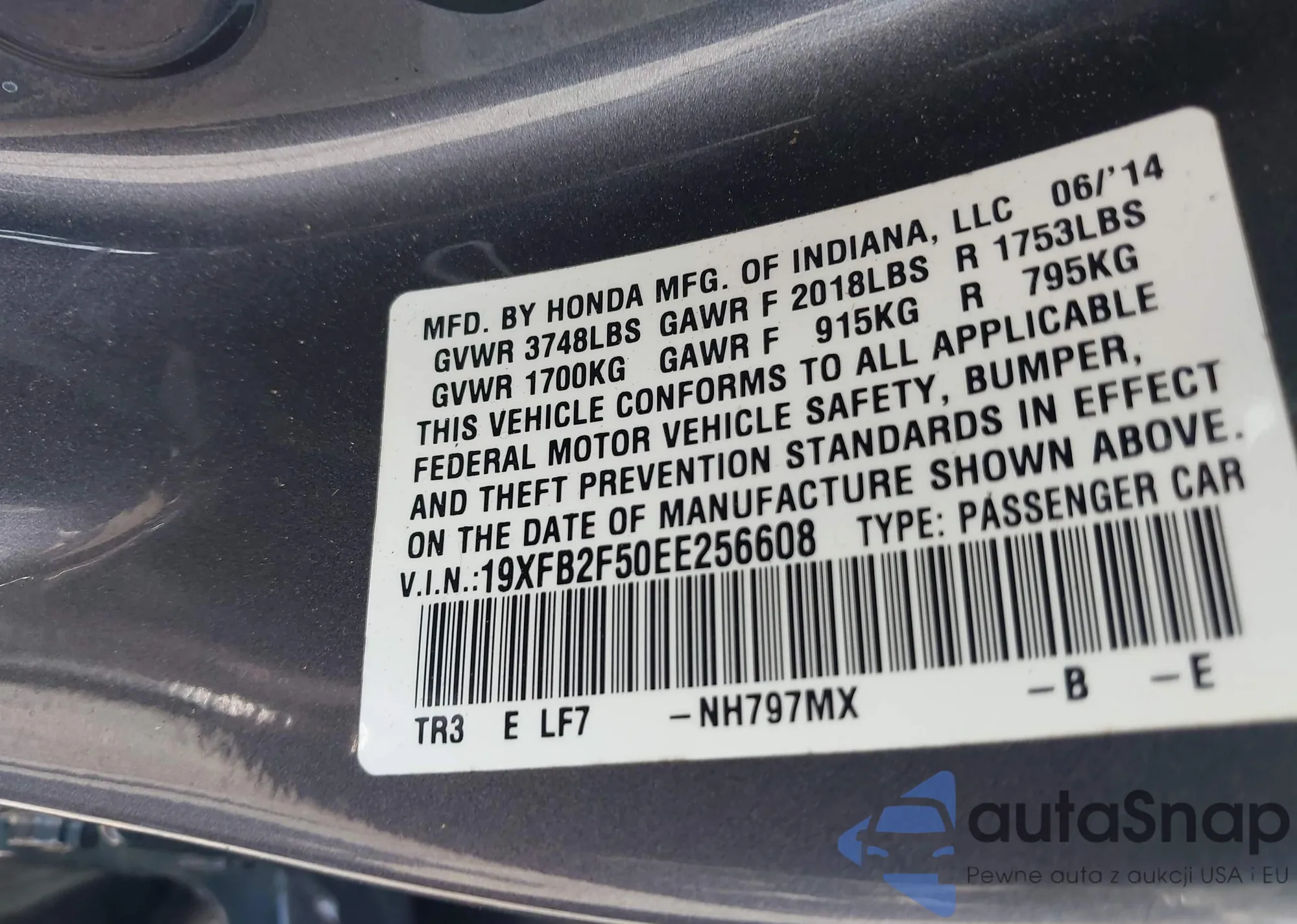 VIN: 19XFB2F50EE256608