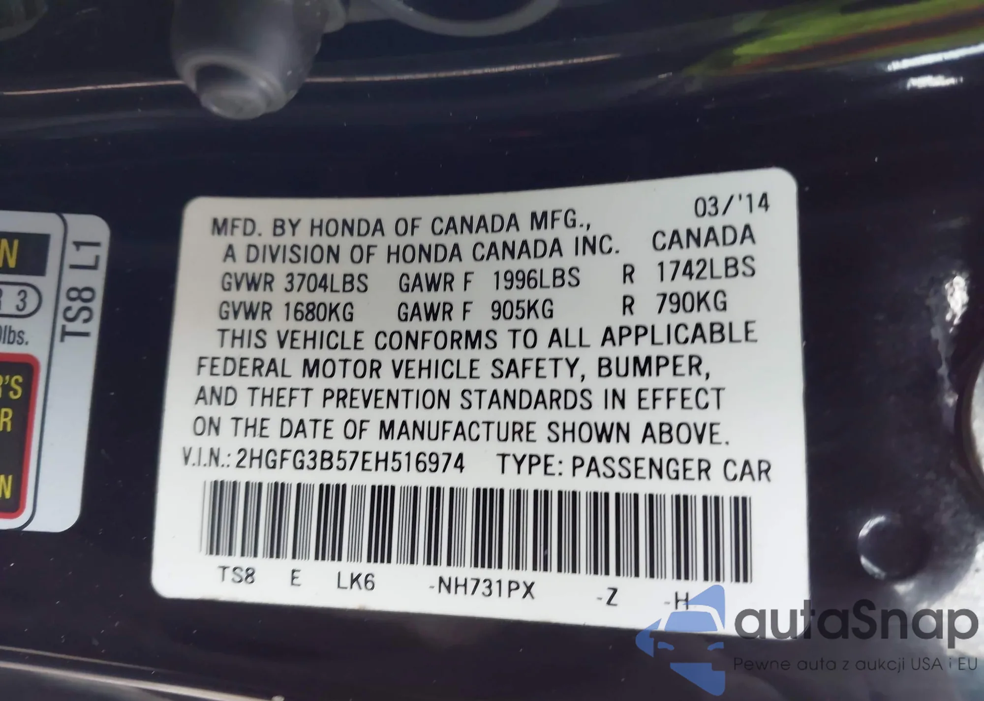 VIN: 2HGFG3B57EH516974