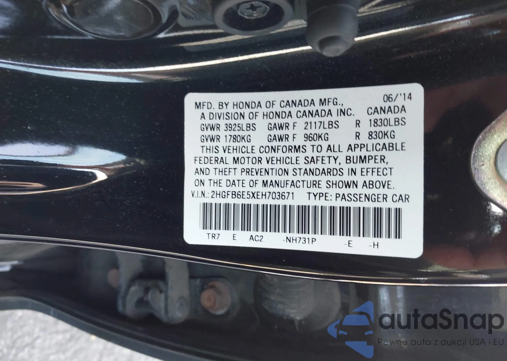 VIN: 2HGFB6E5XEH703671