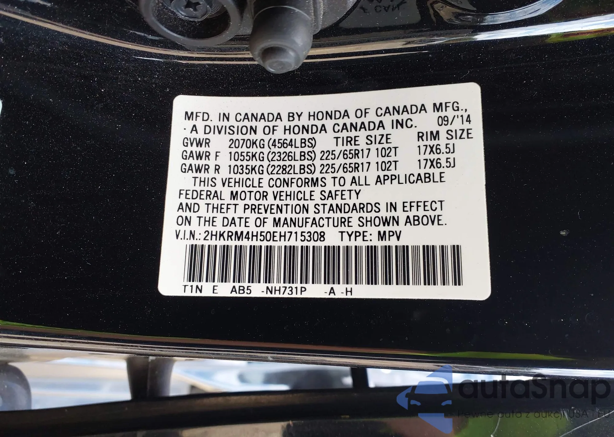 VIN: 2HKRM4H50EH715308