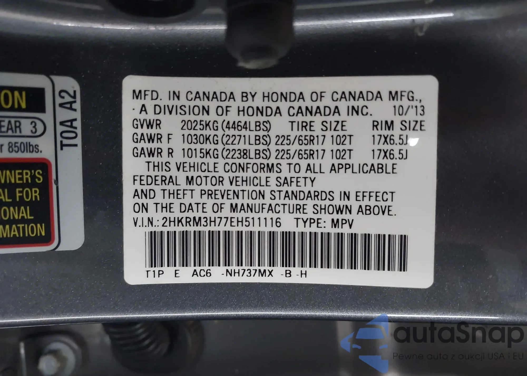 VIN: 2HKRM3H77EH511116