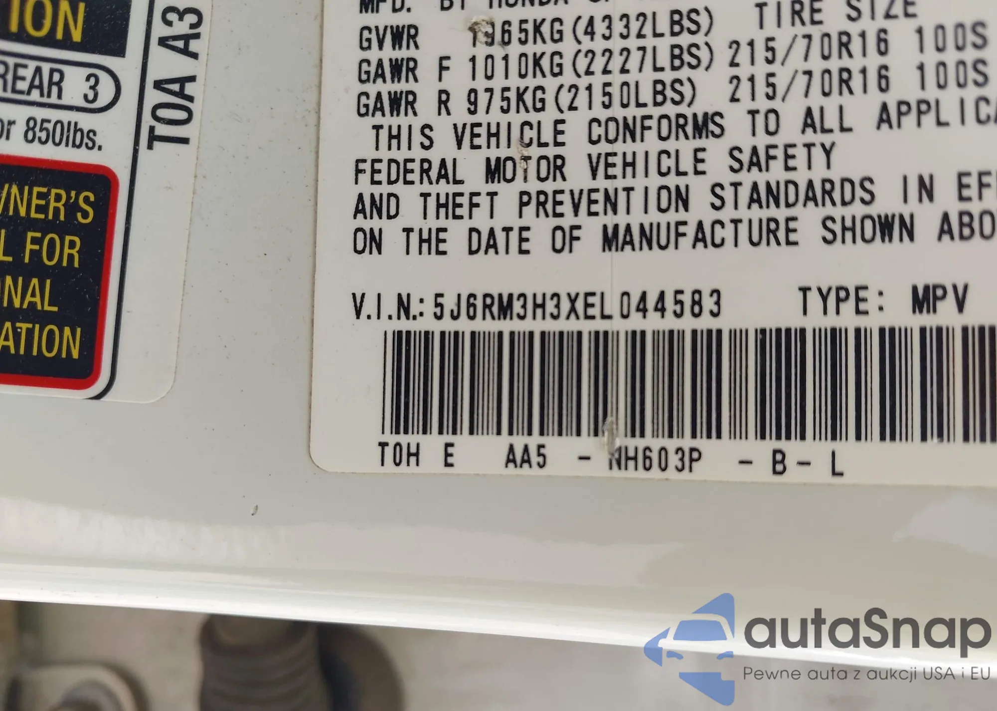 VIN: 5J6RM3H3XEL044583