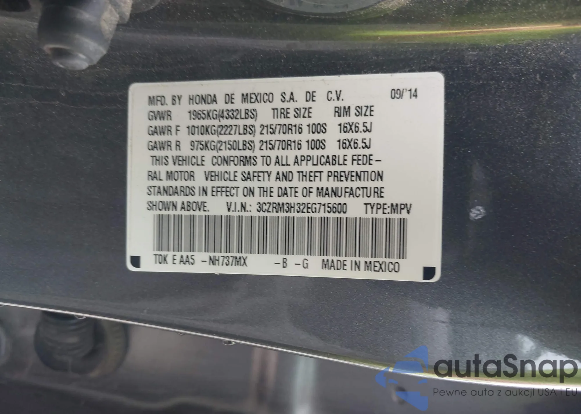 VIN: 3CZRM3H32EG715600