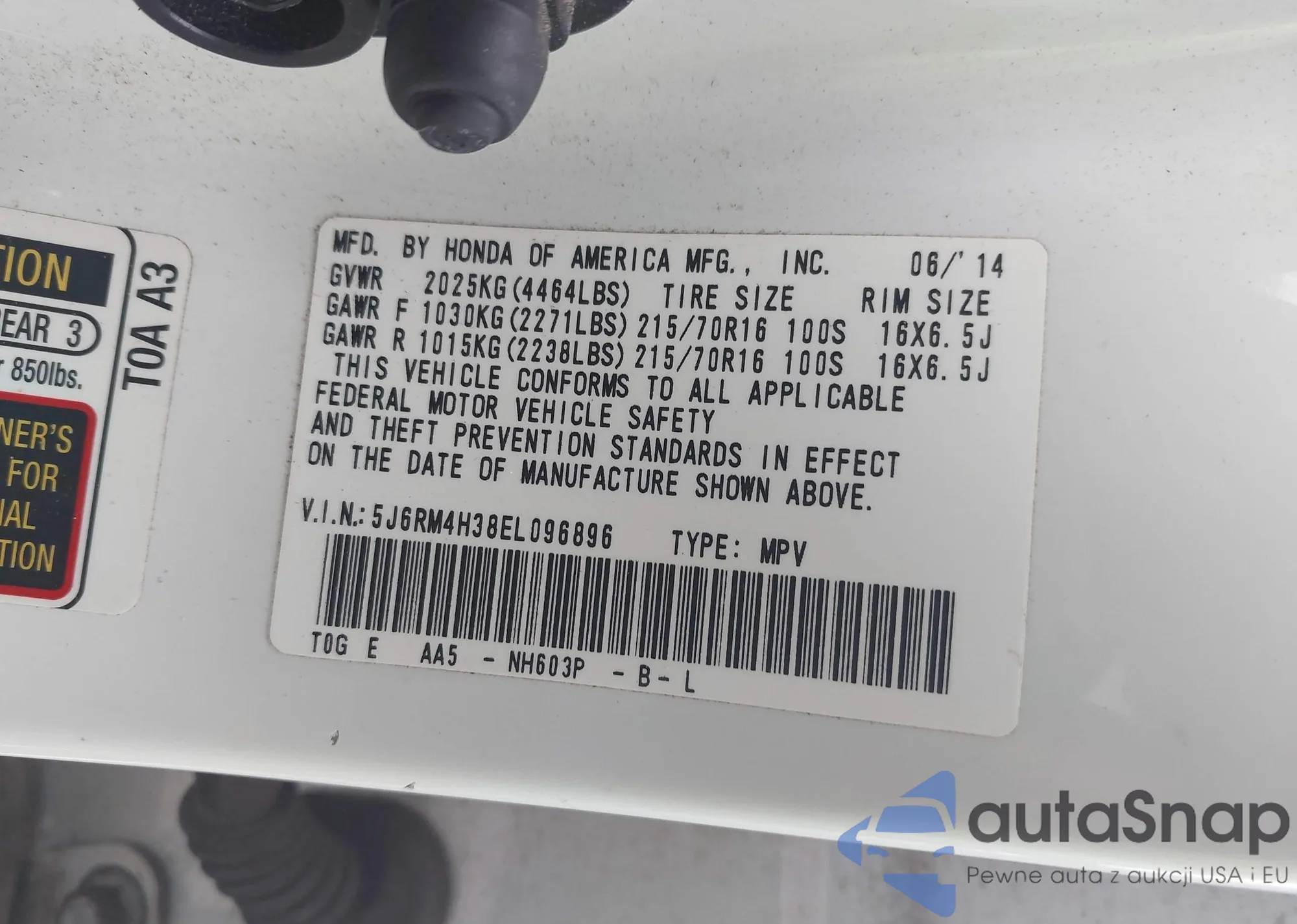 VIN: 5J6RM4H38EL096896