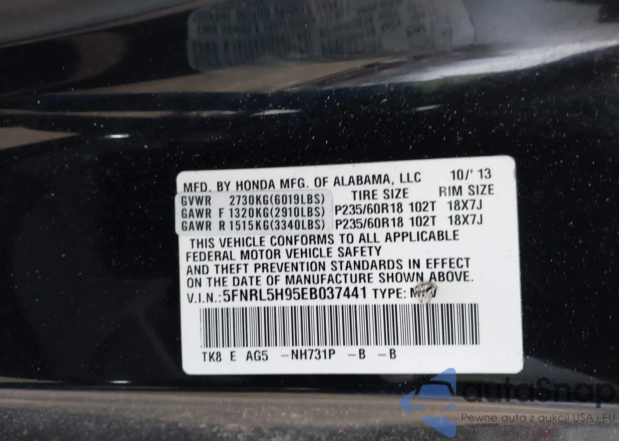 VIN: 5FNRL5H95EB037441