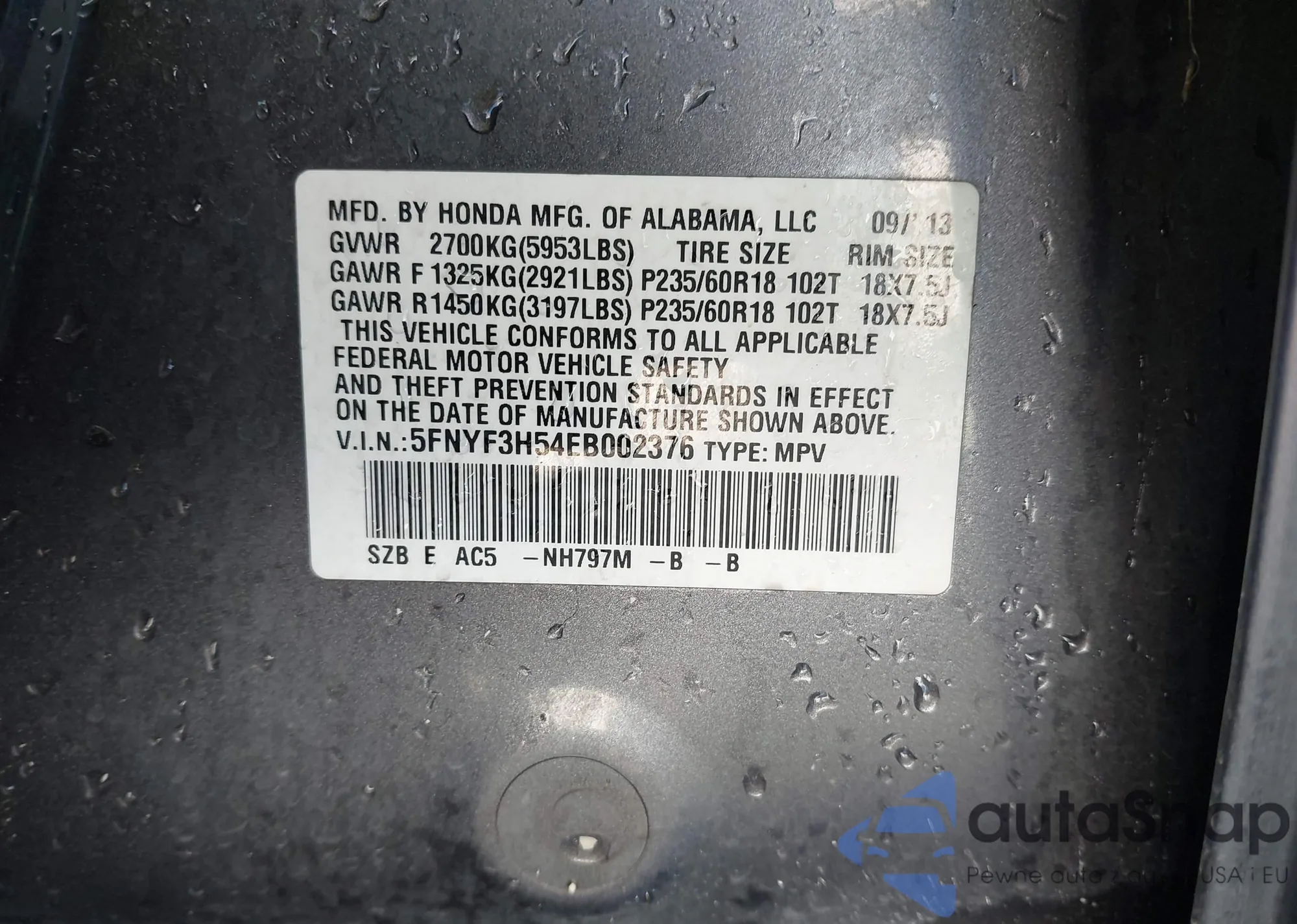Samochód Honda Pilot 2014 (VIN 5FNYF3H54EB002376) nie był wcześniej licytowany. Dokumenty są czyste, przebieg odpowiada lub jest niższy niż średnia rynku. Sprzedaje go firma ubezpieczeniowa – polecamy zakup. Dostawa do portu zajmie ok. 6–8 tygodni.