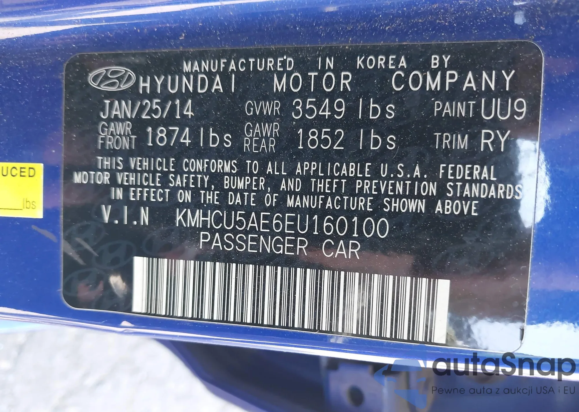 VIN: KMHCU5AE6EU160100