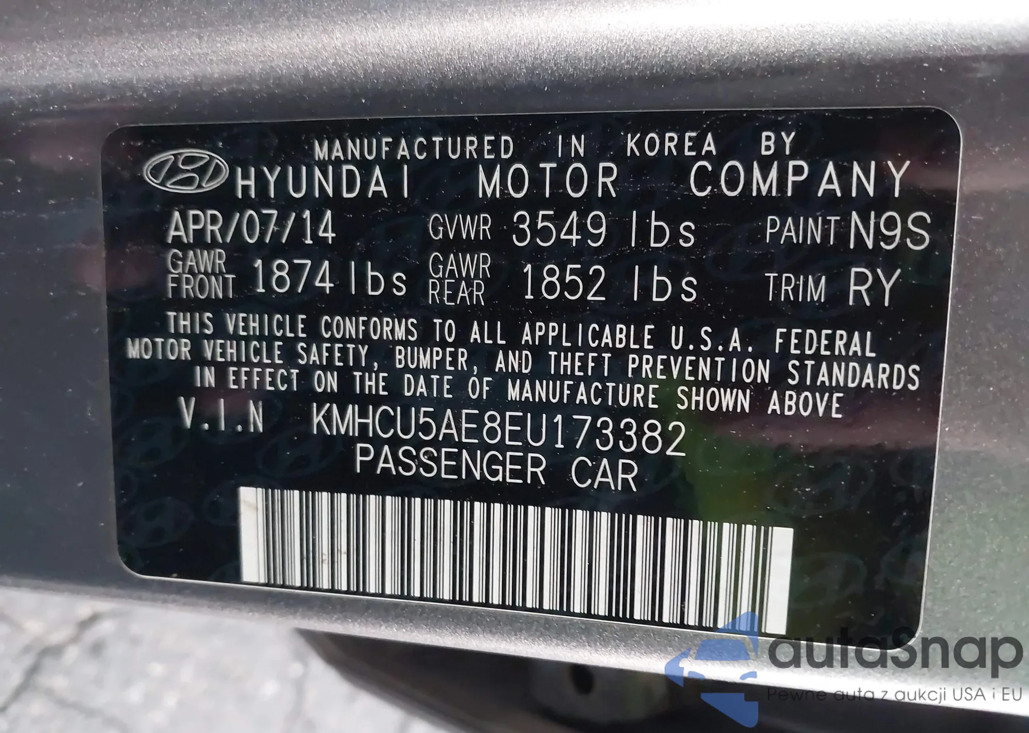 Samochód Hyundai Accent 2014 (VIN KMHCU5AE8EU173382) nie był wcześniej licytowany. Dokumenty są czyste, przebieg odpowiada lub jest niższy niż średnia rynku. Sprzedaje go firma ubezpieczeniowa – polecamy zakup. Dostawa do portu zajmie ok. 6–8 tygodni.