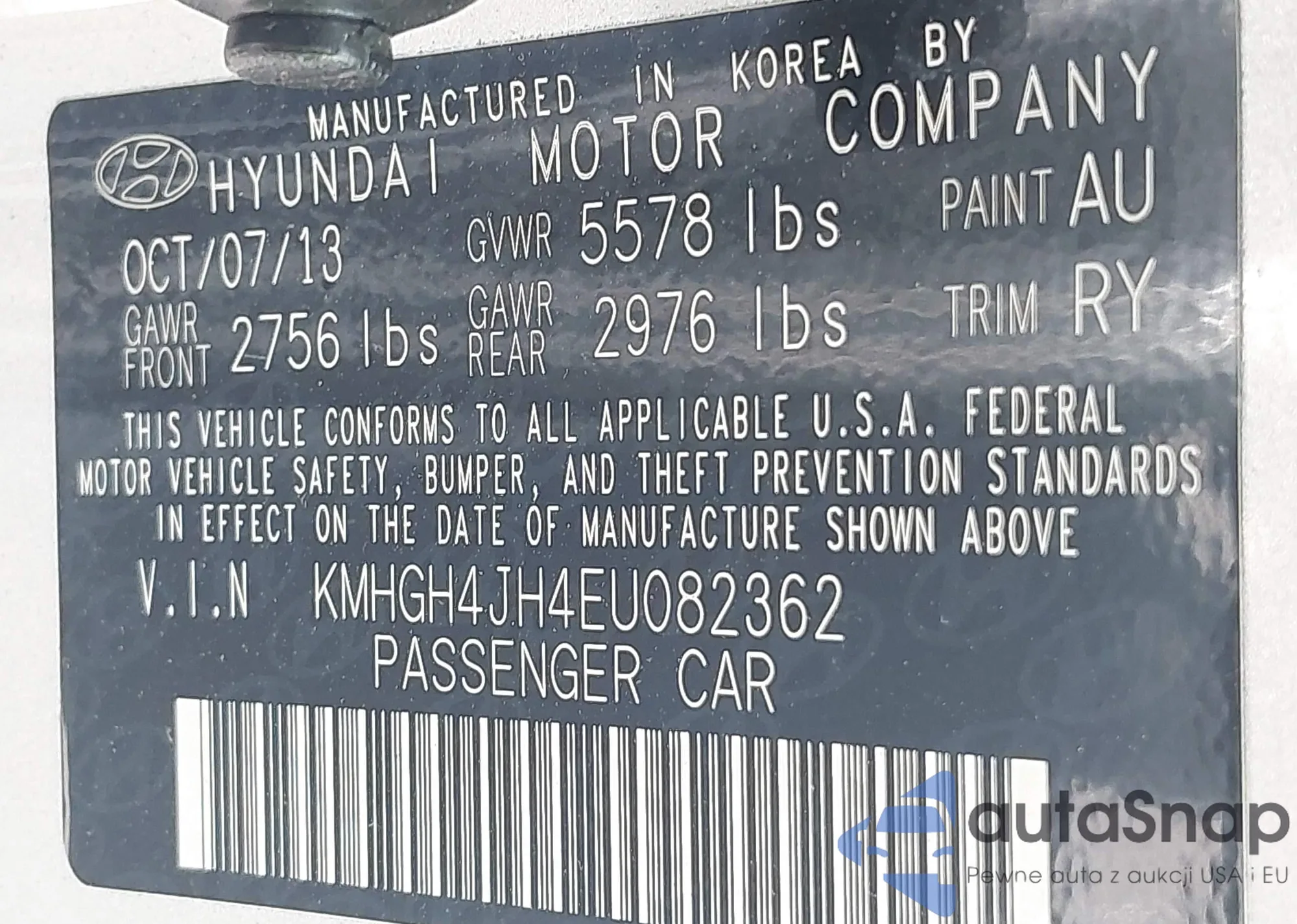 VIN: KMHGH4JH4EU082362