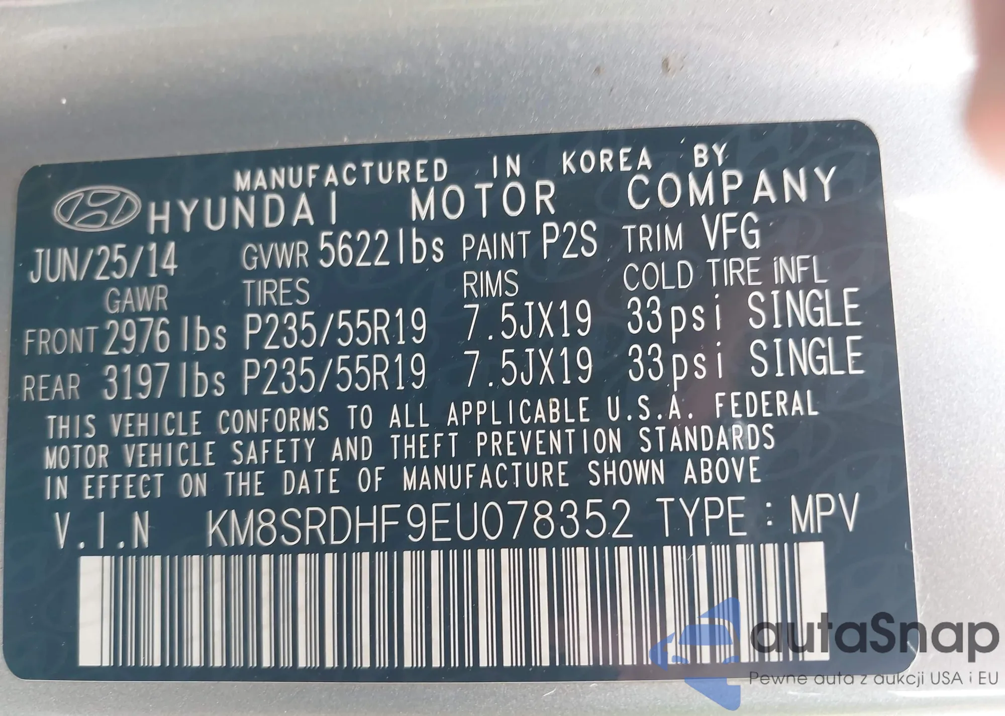 VIN: KM8SRDHF9EU078352