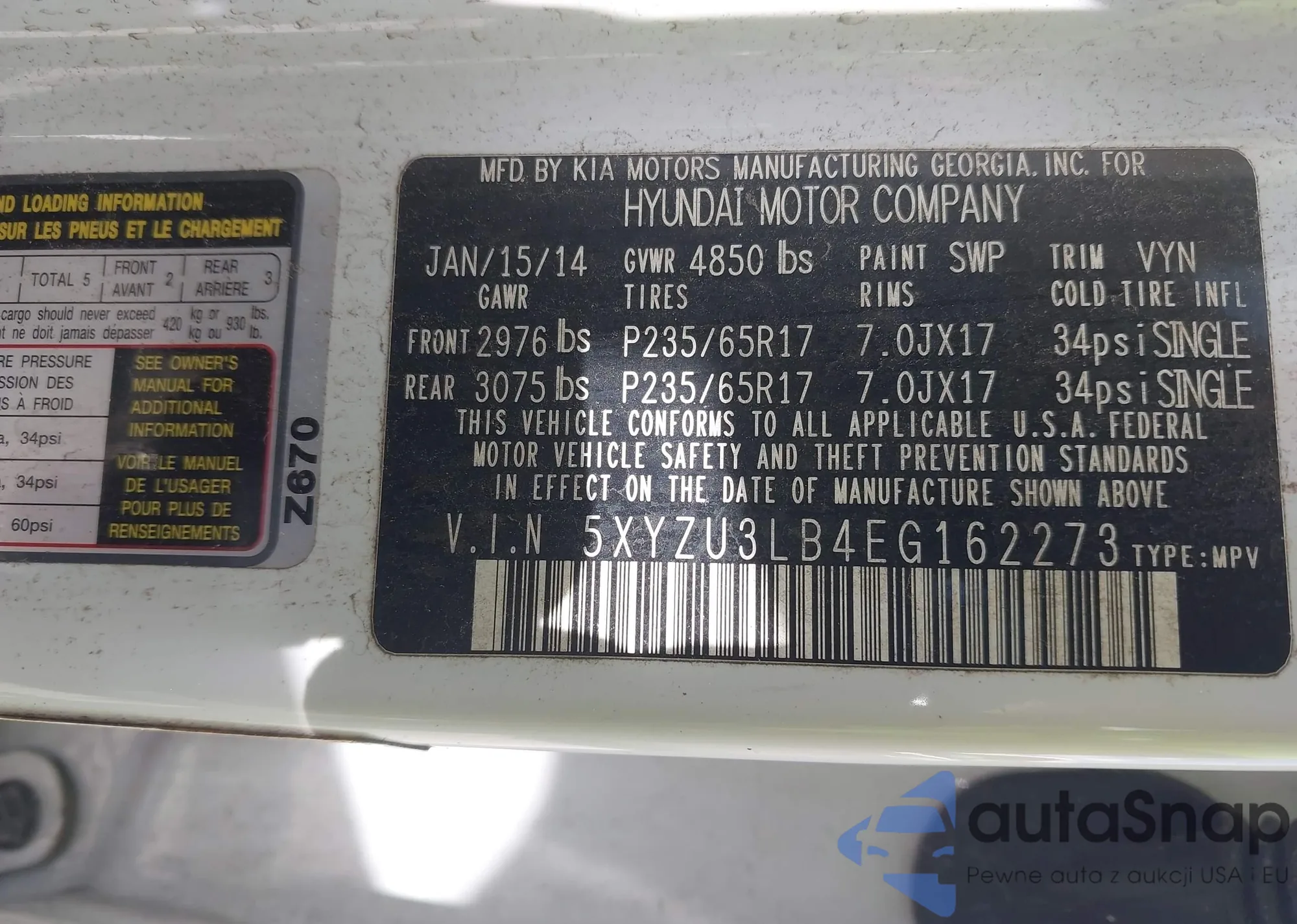 VIN: 5XYZU3LB4EG162273