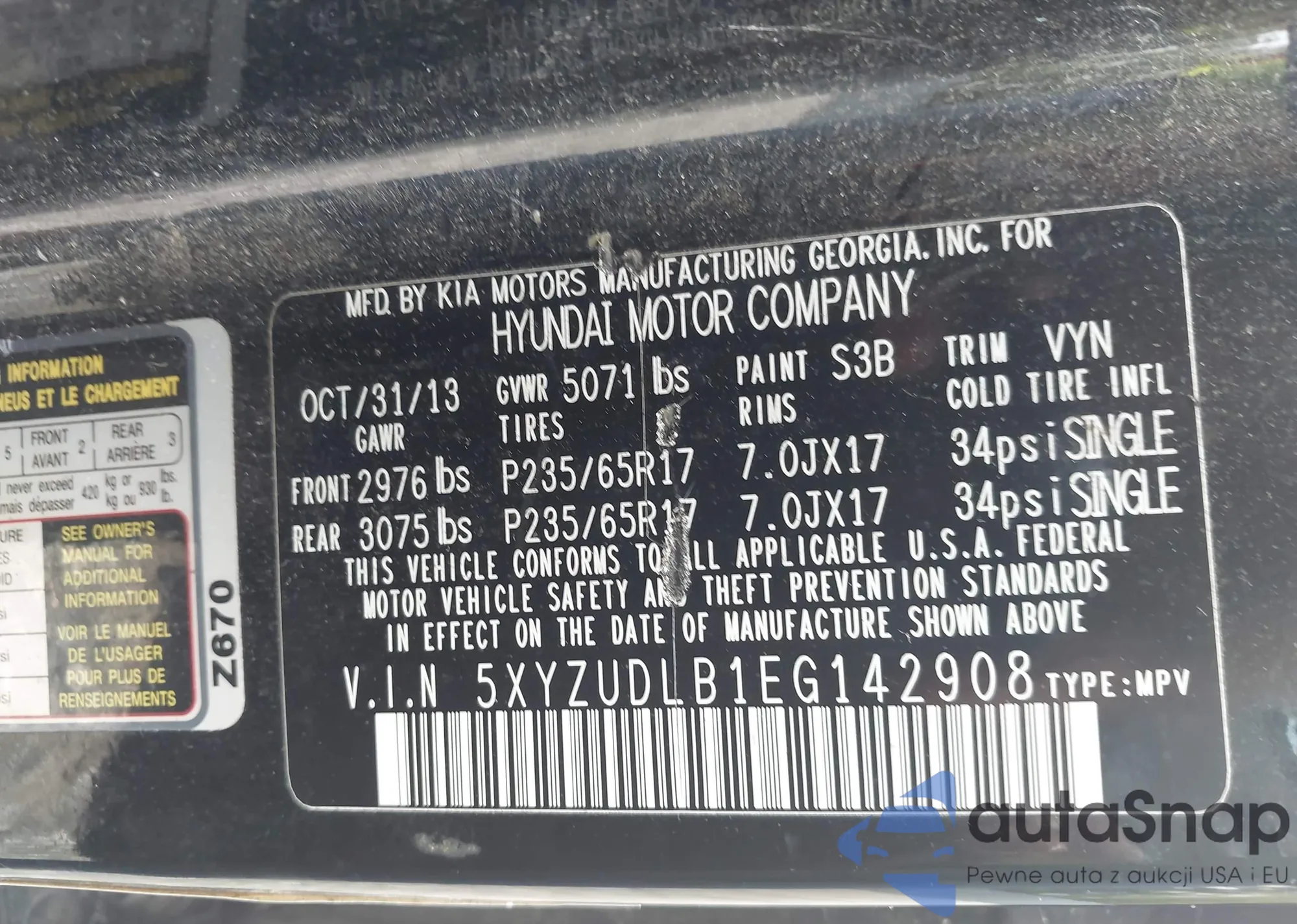 VIN: 5XYZUDLB1EG142908