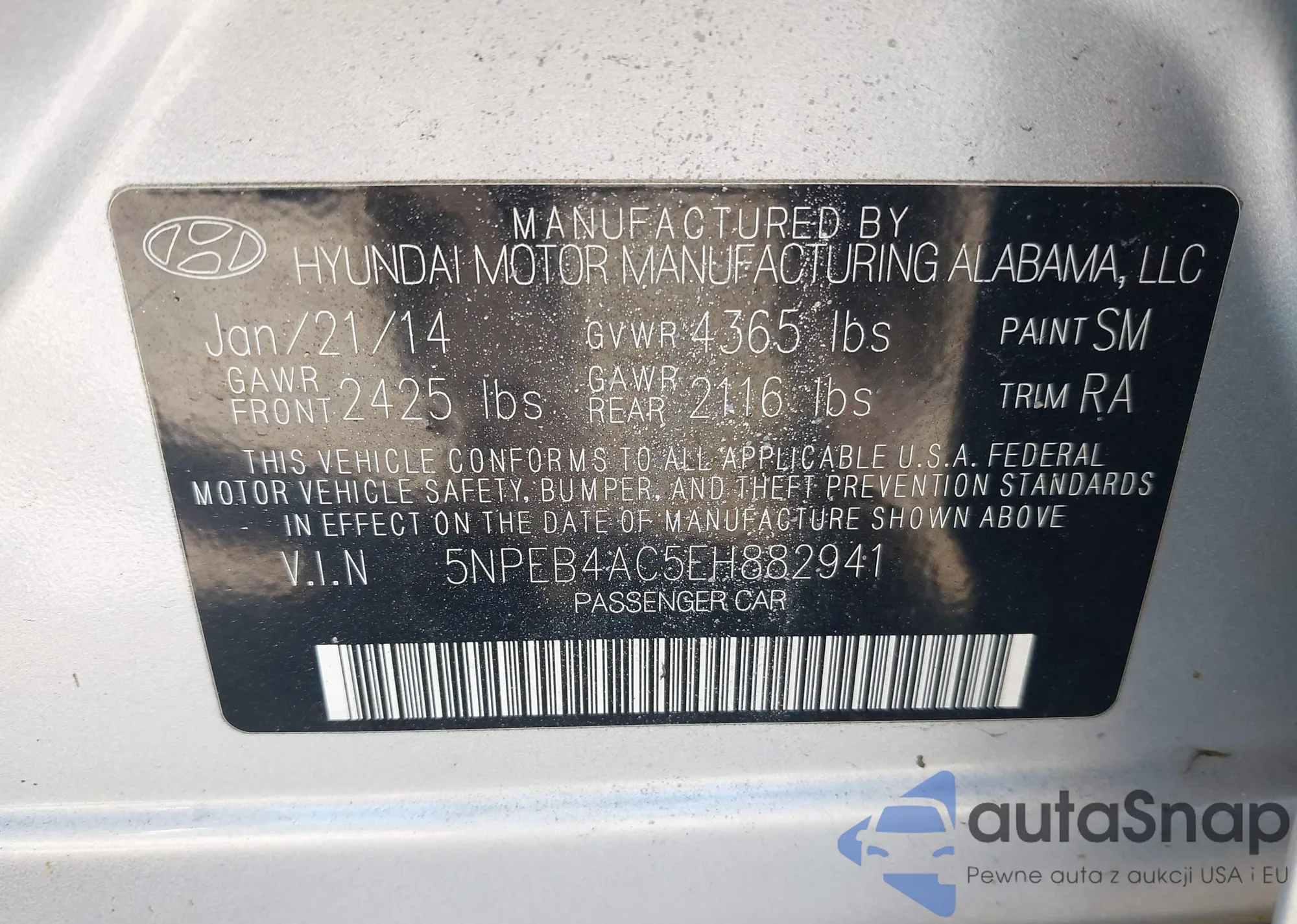 VIN: 5NPEB4AC5EH882941