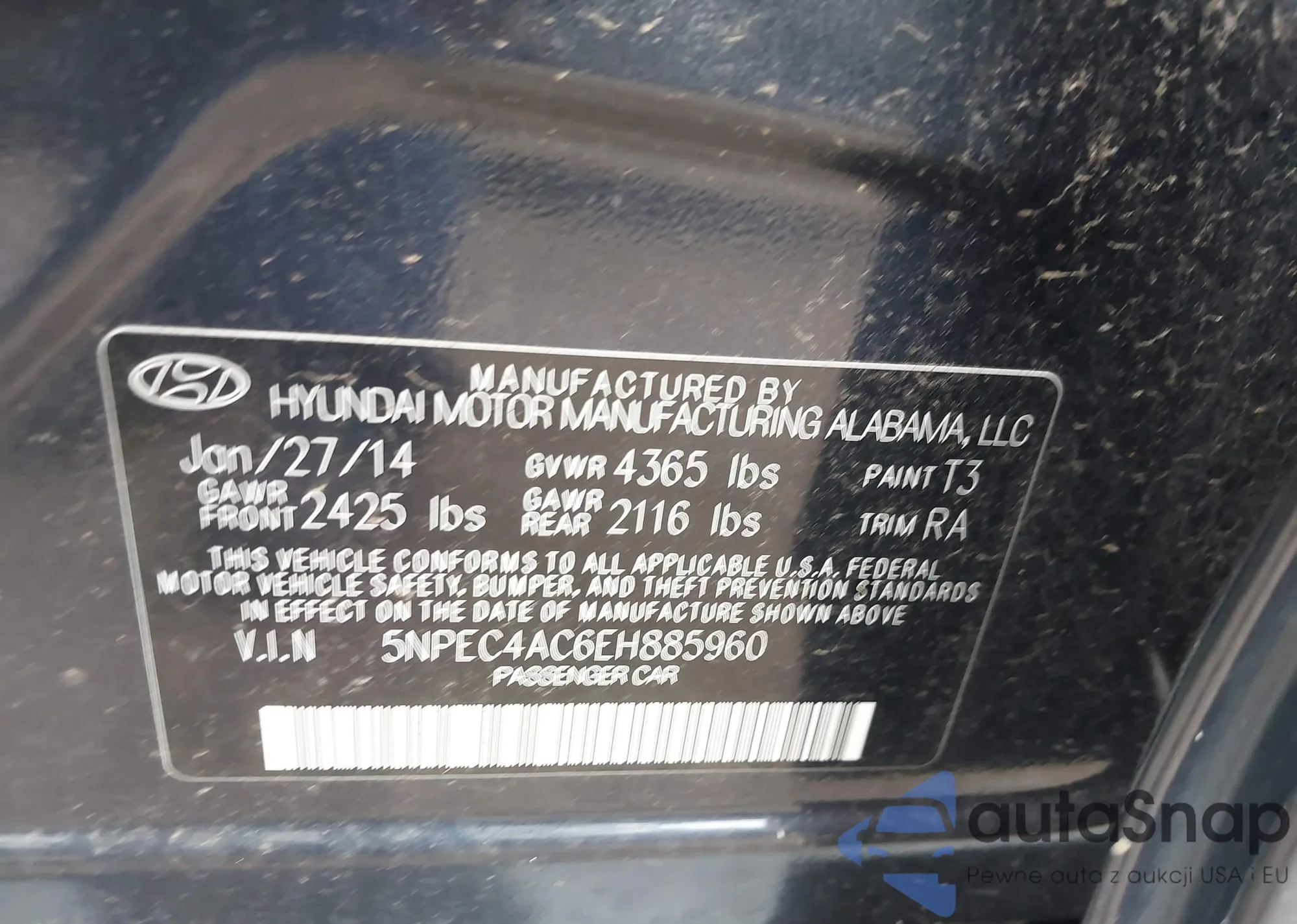 VIN: 5NPEC4AC6EH885960