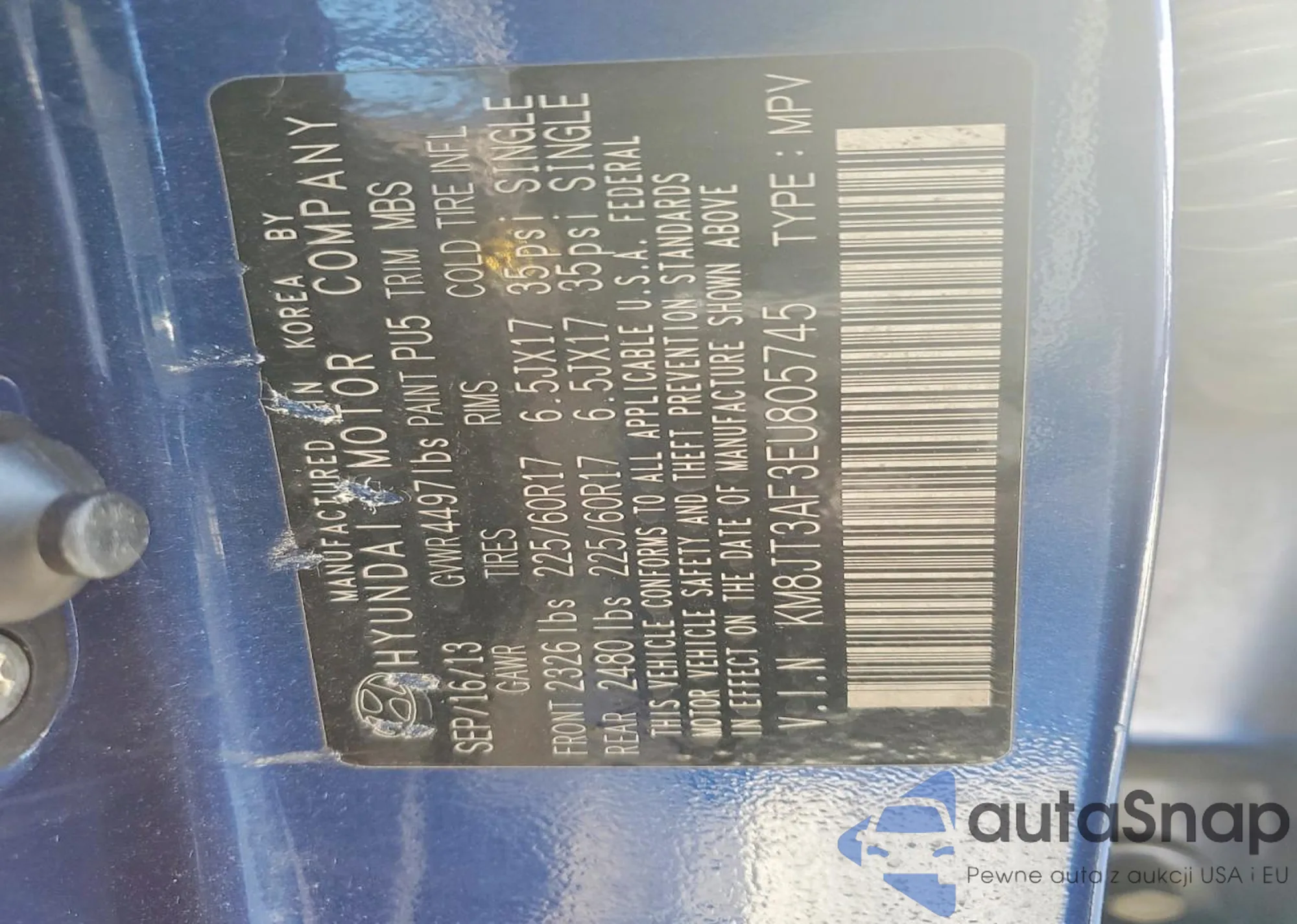 Samochód Hyundai Tucson 2014 (VIN KM8JT3AF3EU805745) nie był wcześniej licytowany. Dokumenty są czyste, przebieg odpowiada lub jest niższy niż średnia rynku. Sprzedaje go firma ubezpieczeniowa – polecamy zakup. Dostawa do portu zajmie ok. 6–8 tygodni.