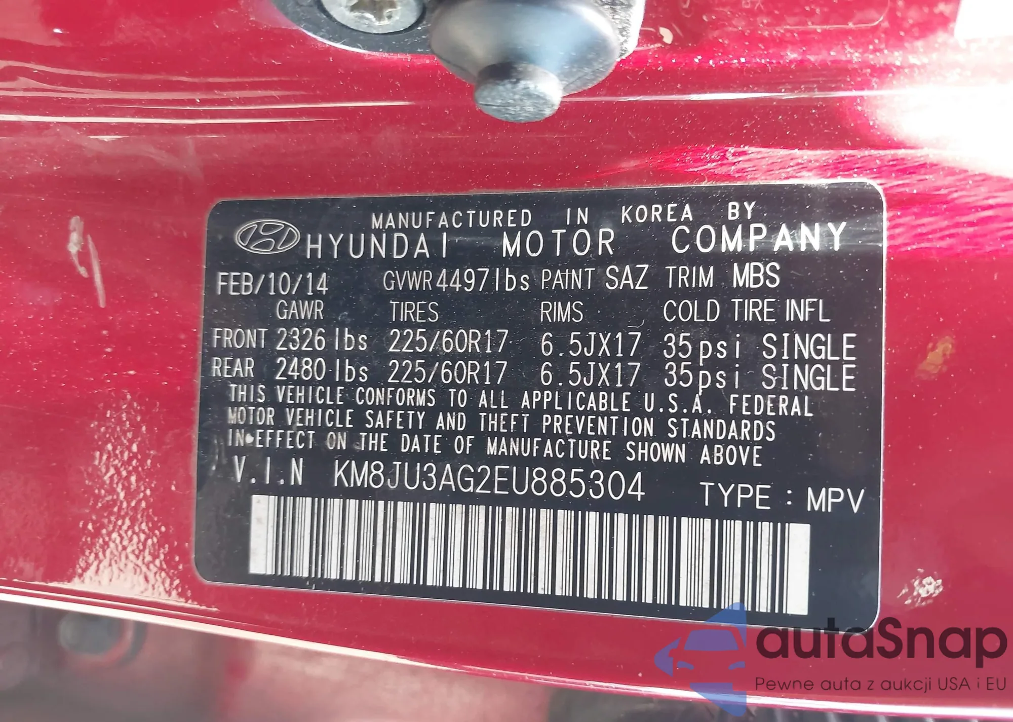 VIN: KM8JU3AG2EU885304