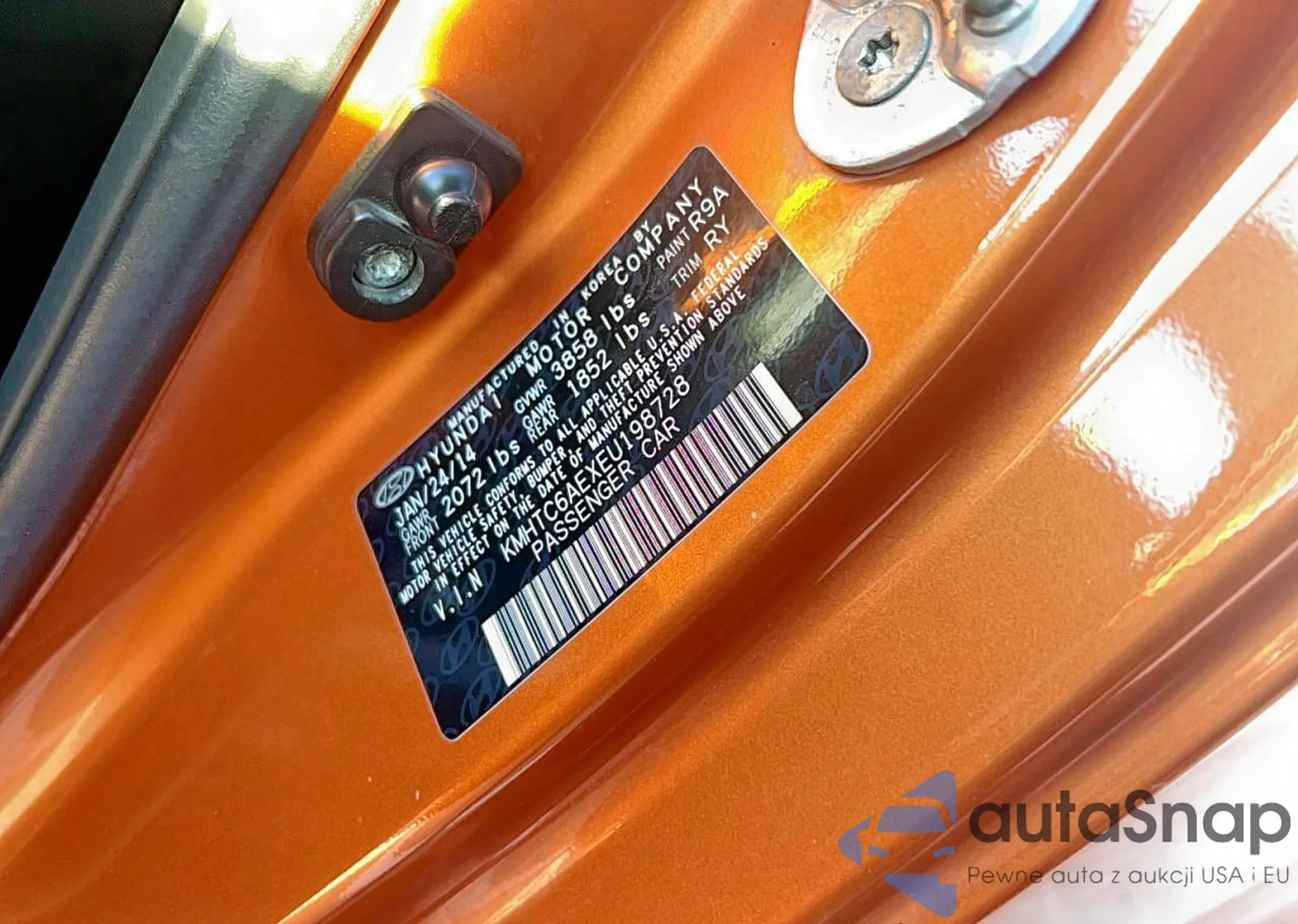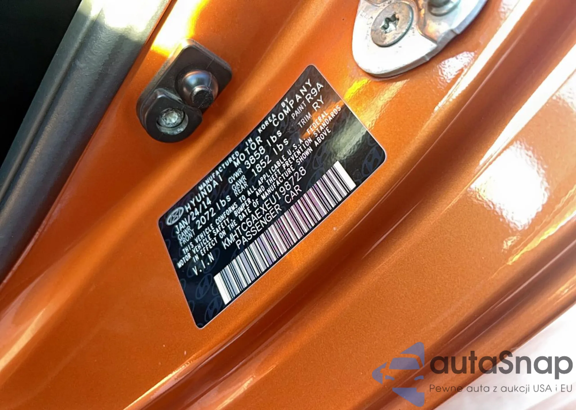 Samochód Hyundai Veloster 2014 (VIN KMHTC6AEXEU198728) sprzedaje go niezweryfikowany sprzedawca. Zalecamy raport Carfax i potwierdzenie możliwości rejestracji pojazdu przed zakupem.