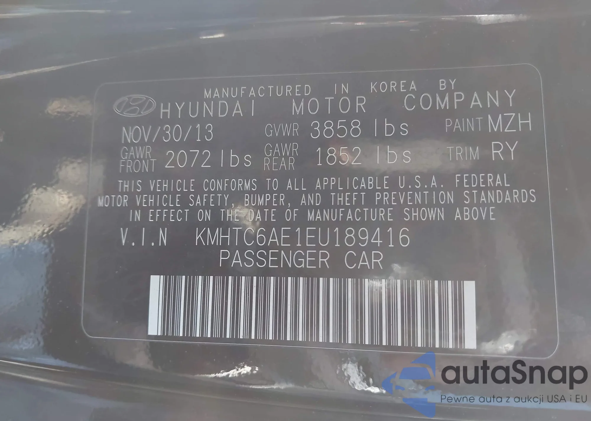 Samochód Hyundai Veloster 2014 (VIN KMHTC6AE1EU189416) nie był wcześniej licytowany. Dokumenty są czyste, przebieg odpowiada lub jest niższy niż średnia rynku. Sprzedaje go firma ubezpieczeniowa – polecamy zakup. Dostawa do portu zajmie ok. 6–8 tygodni.