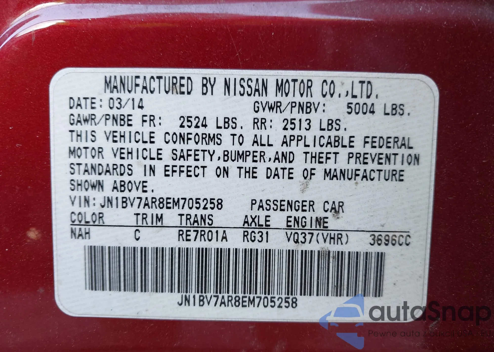 VIN: JN1BV7AR8EM705258