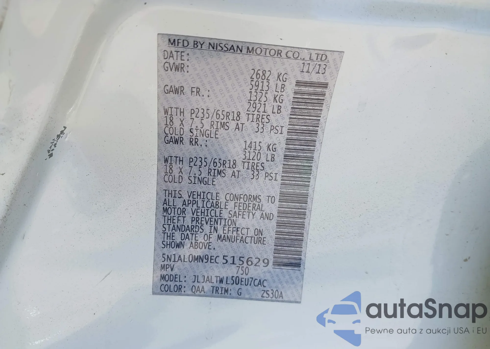 VIN: 5N1AL0MN9EC515629