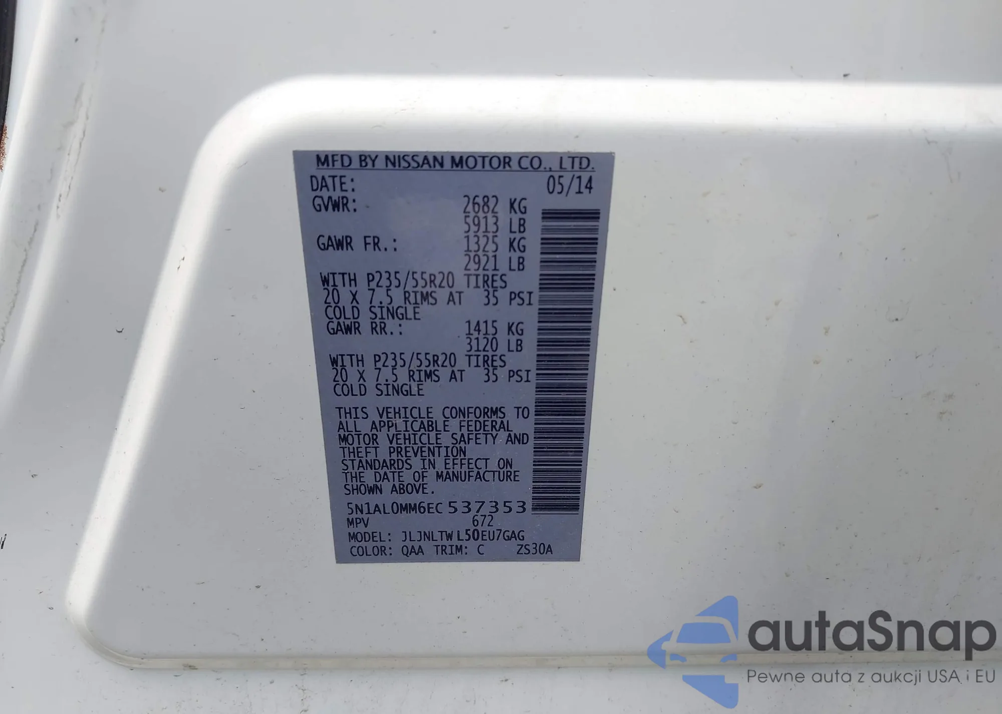 VIN: 5N1AL0MM6EC537353