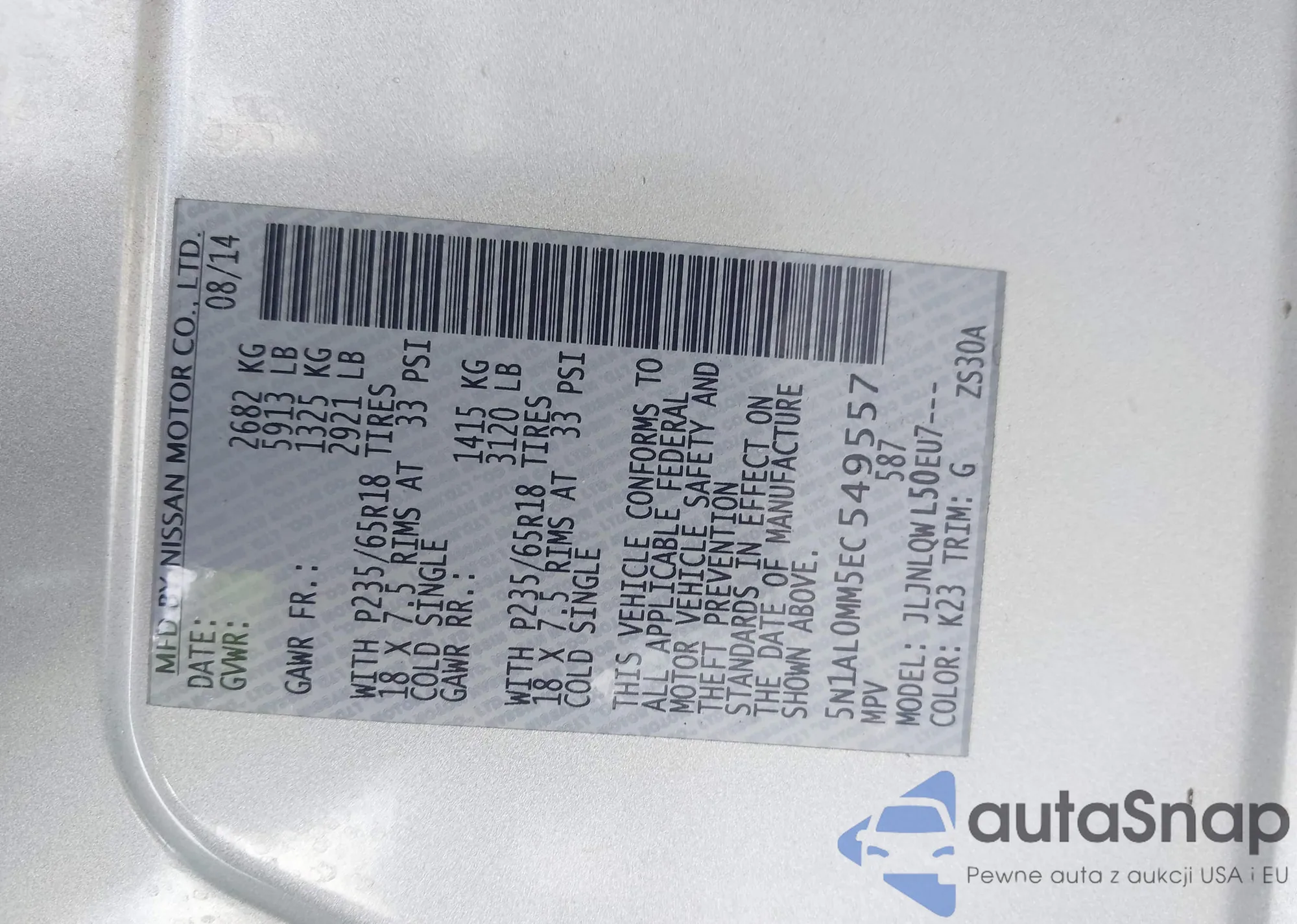 VIN: 5N1AL0MM5EC549557