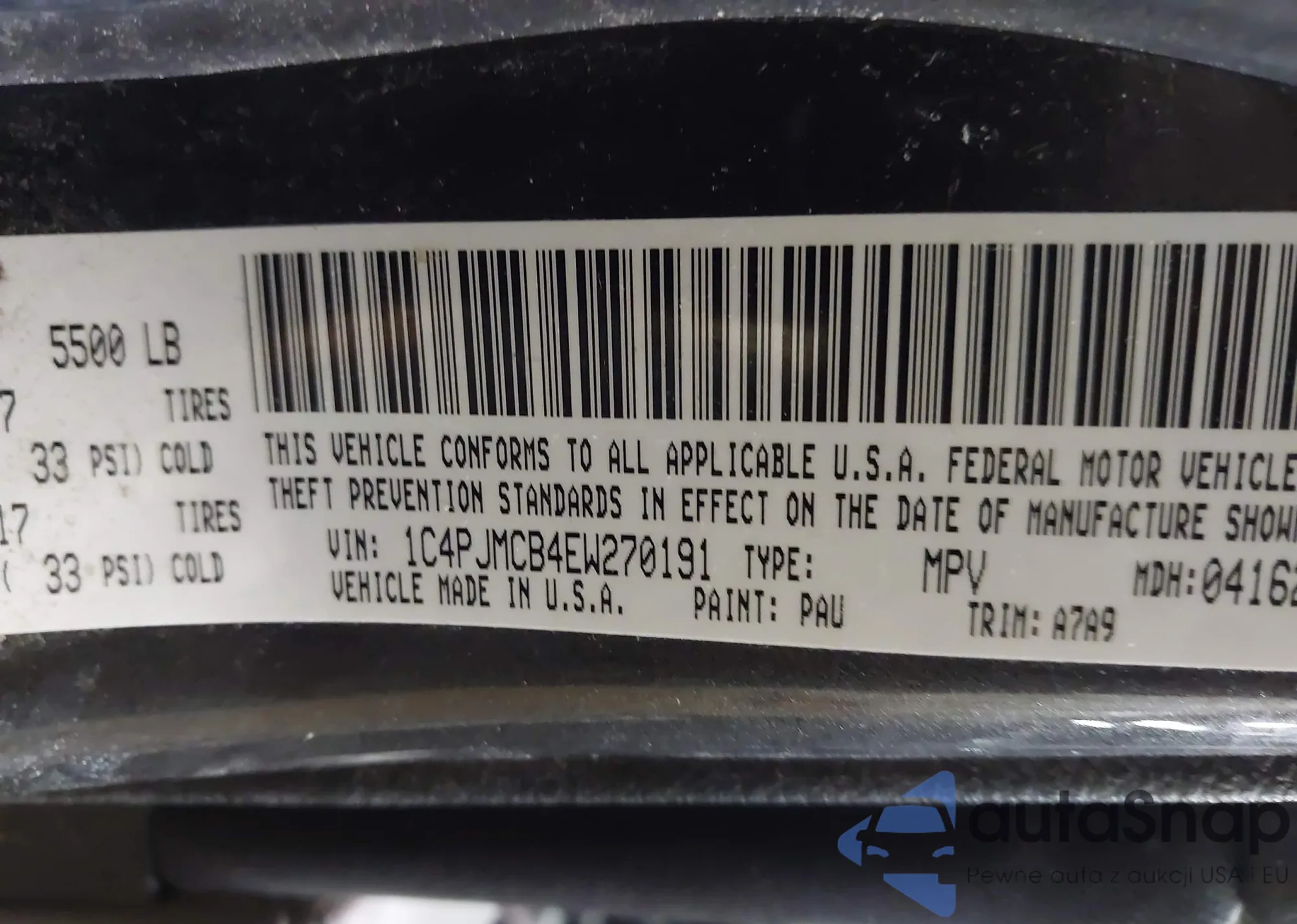 • VIN: 1C4PJMCB4EW270191