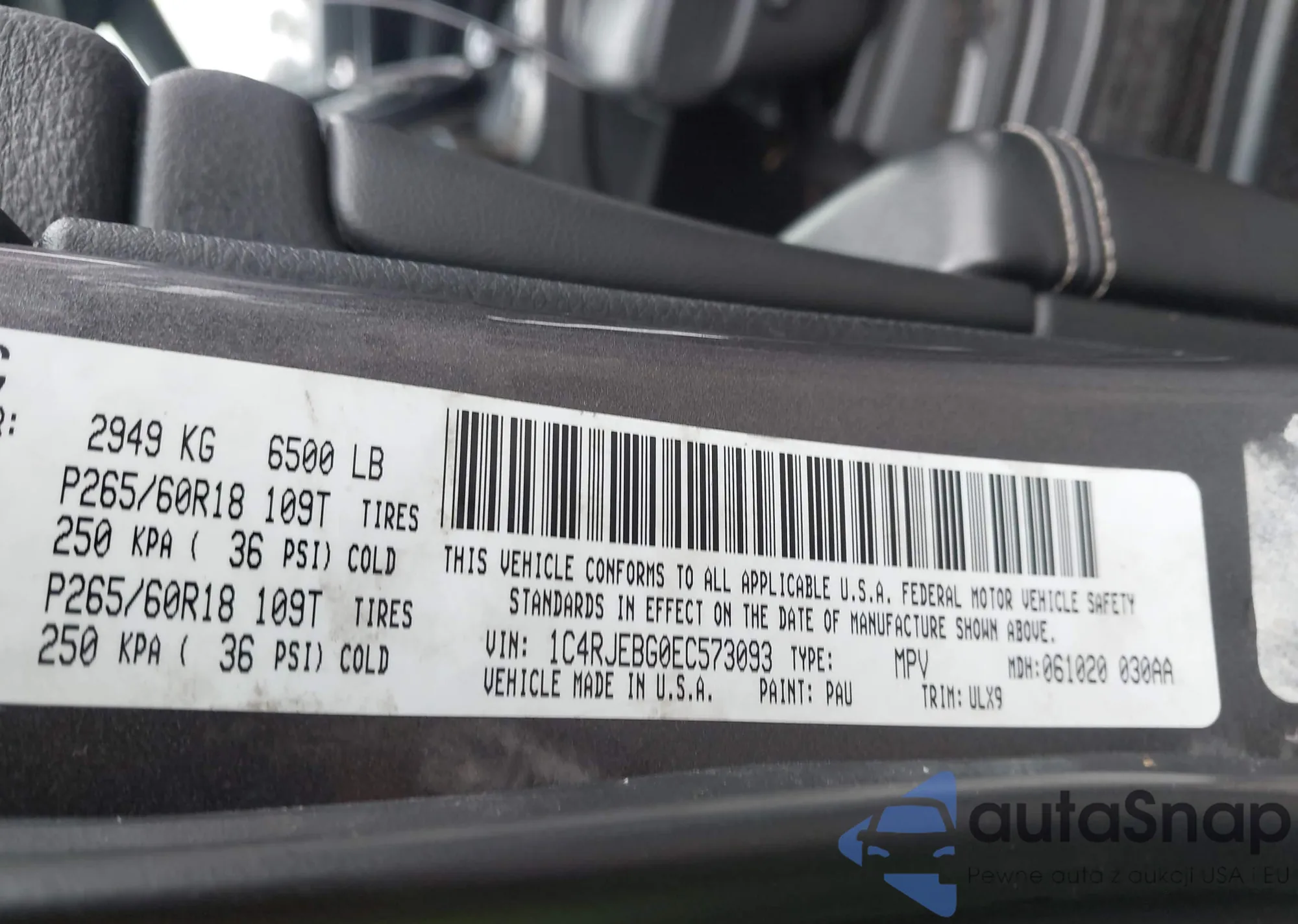 Samochód Jeep Grand Cherokee 2014 (VIN 1C4RJEBG0EC573093) był już licytowany 1 razy i/lub sprzedaje go niezweryfikowany sprzedawca. Zalecamy raport Carfax i potwierdzenie możliwości rejestracji pojazdu przed zakupem.