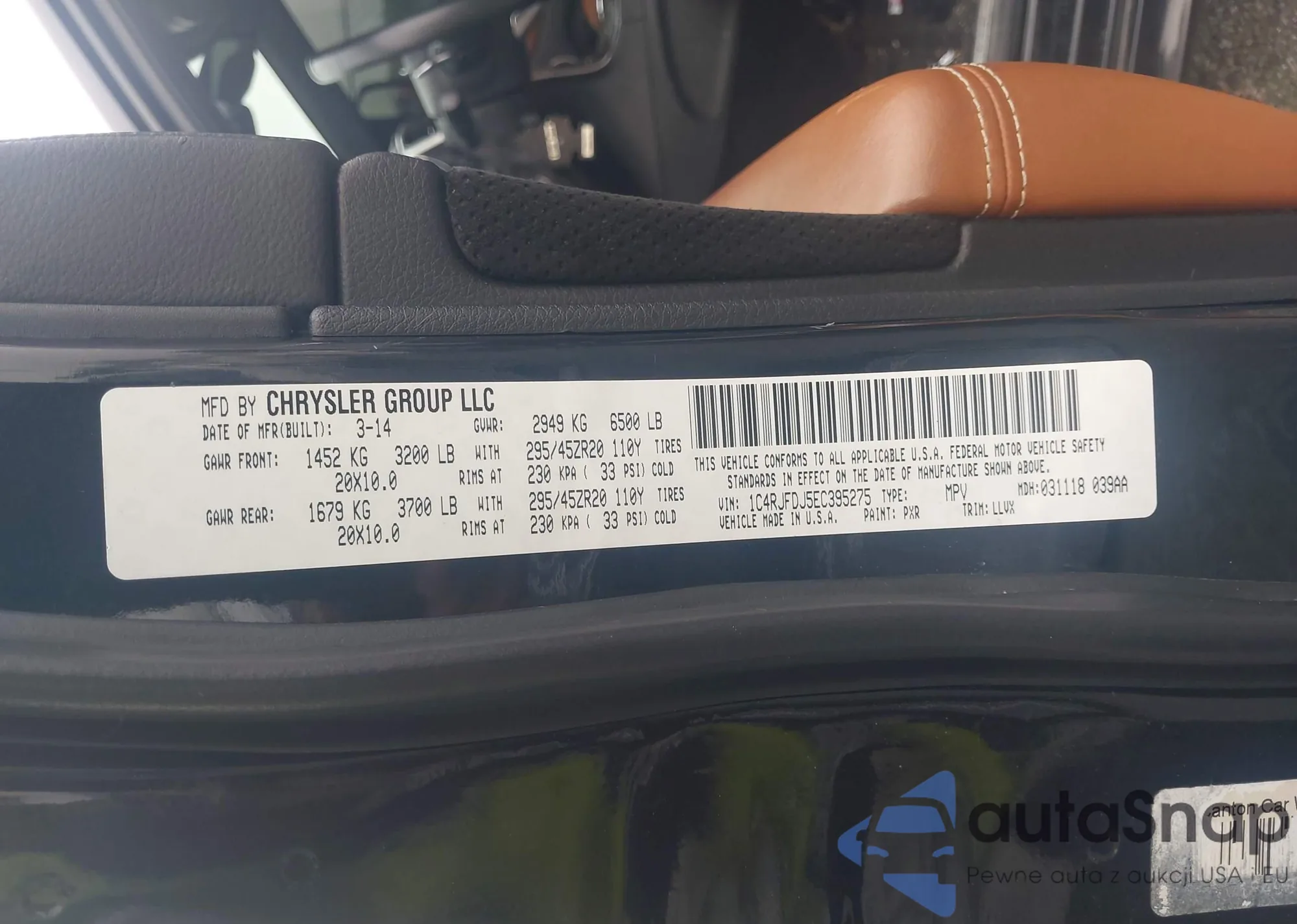 • VIN: 1C4RJFDJ5EC395275