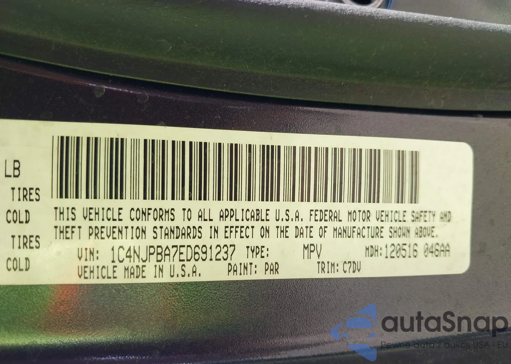 Samochód Jeep Liberty (Patriot) 2014 (VIN 1C4NJPBA7ED691237) nie był wcześniej licytowany. Dokumenty są czyste, przebieg odpowiada lub jest niższy niż średnia rynku. Sprzedaje go firma ubezpieczeniowa – polecamy zakup. Dostawa do portu zajmie ok. 6–8 tygodni.