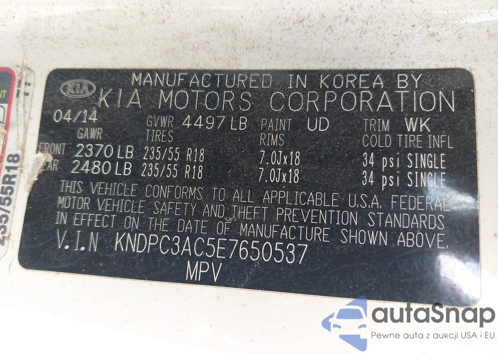 • VIN: KNDPC3AC5E7650537