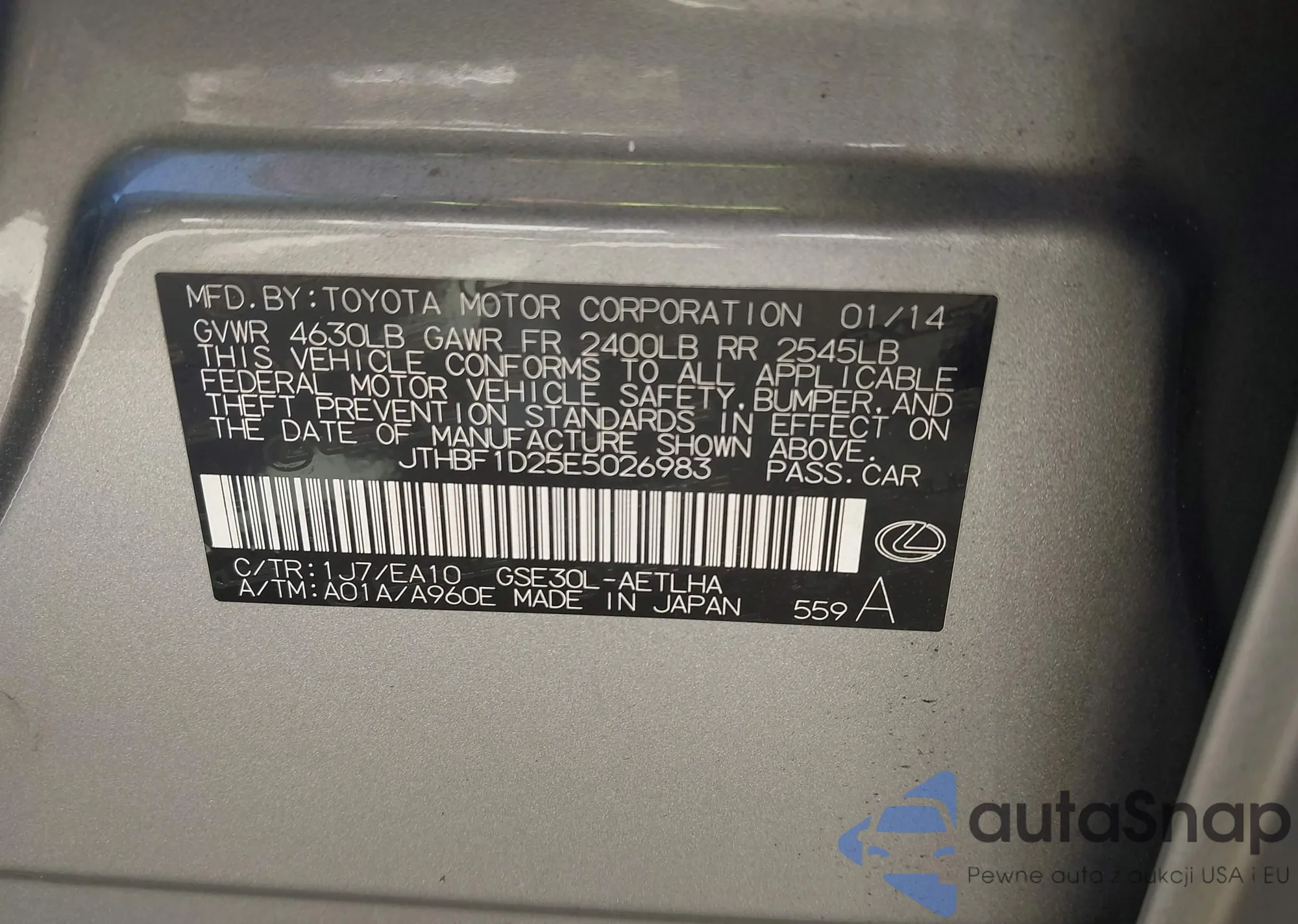 VIN: JTHBF1D25E5026983
