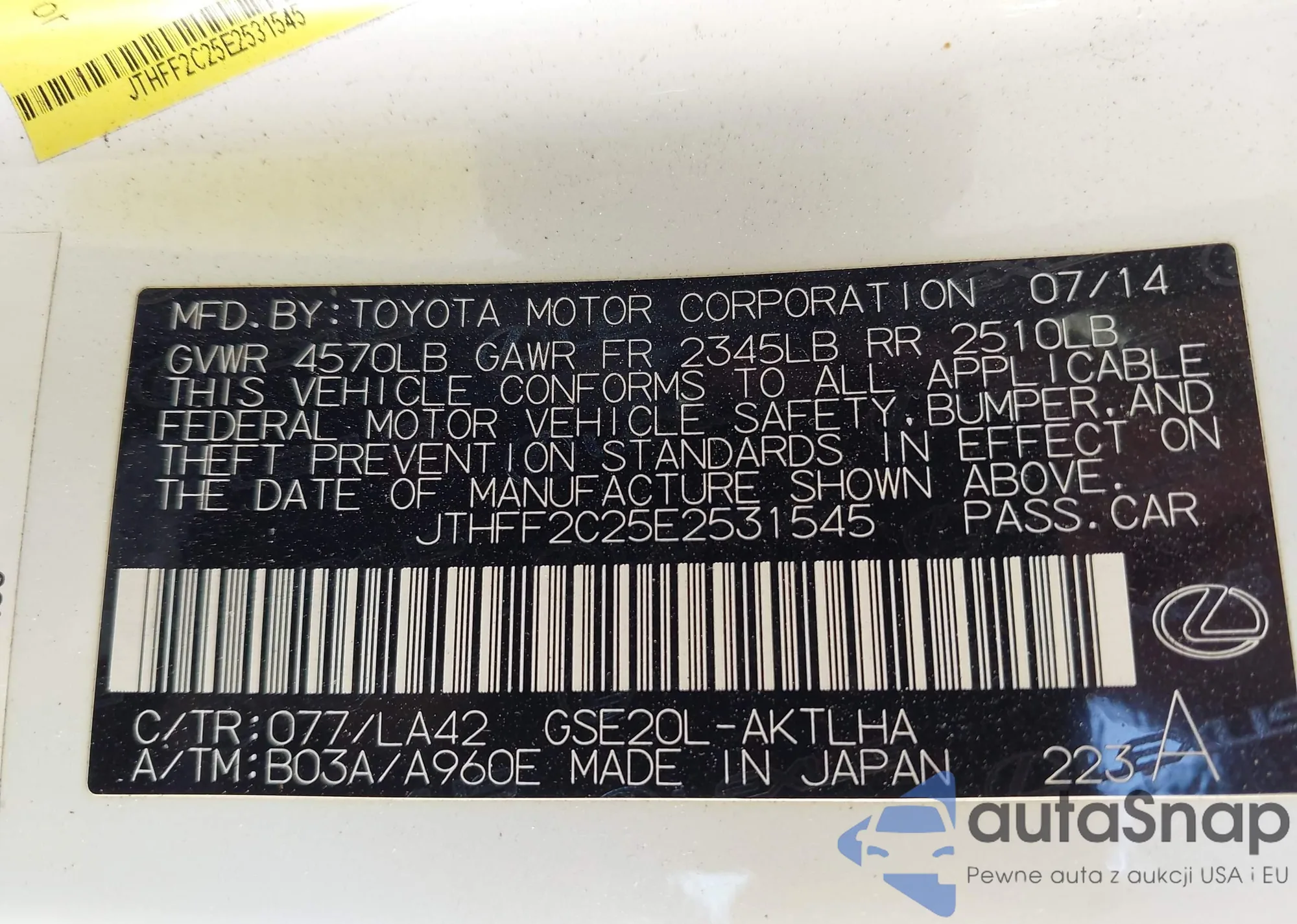 VIN: JTHFF2C25E2531545
