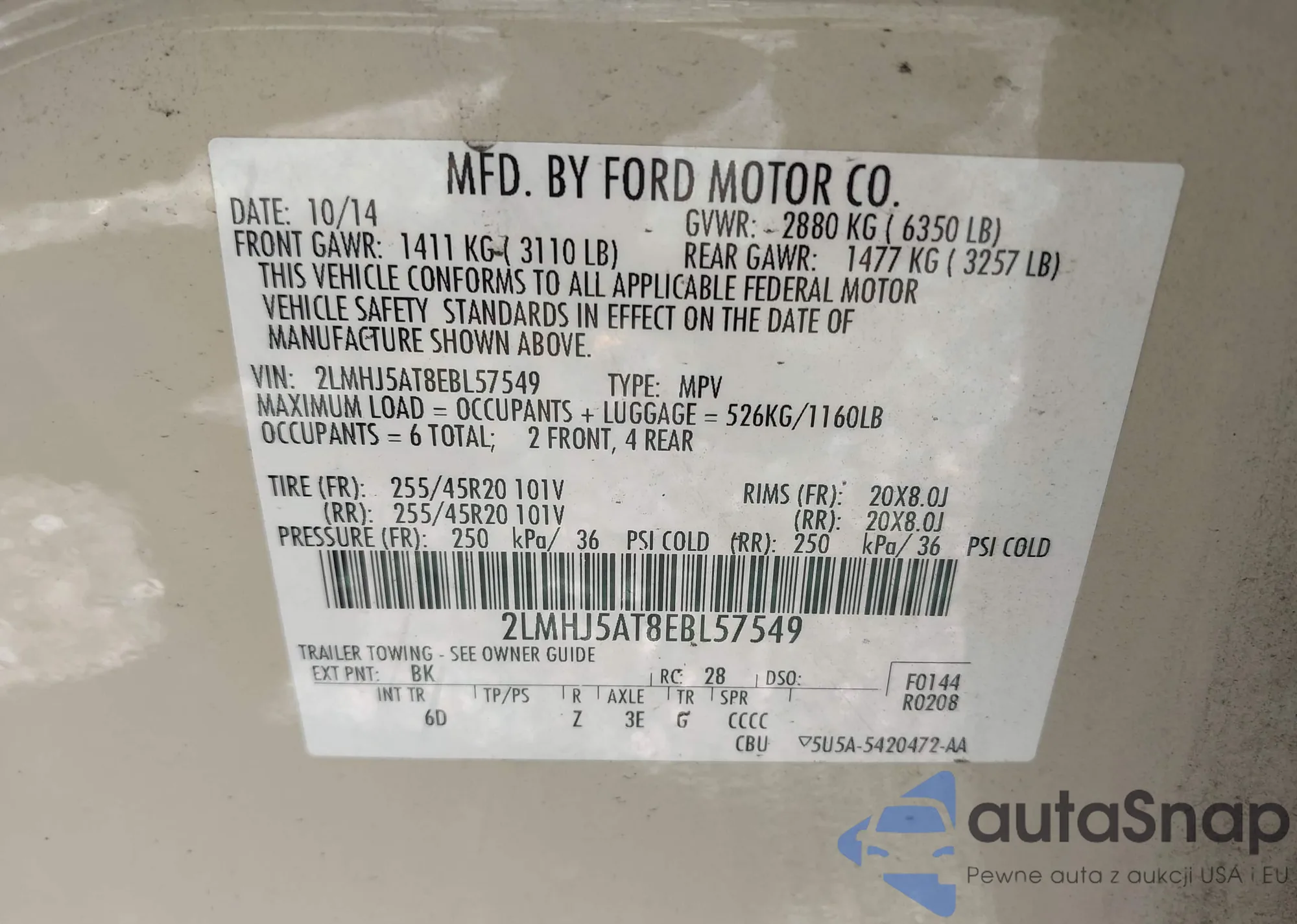 VIN: 2LMHJ5AT8EBL57549