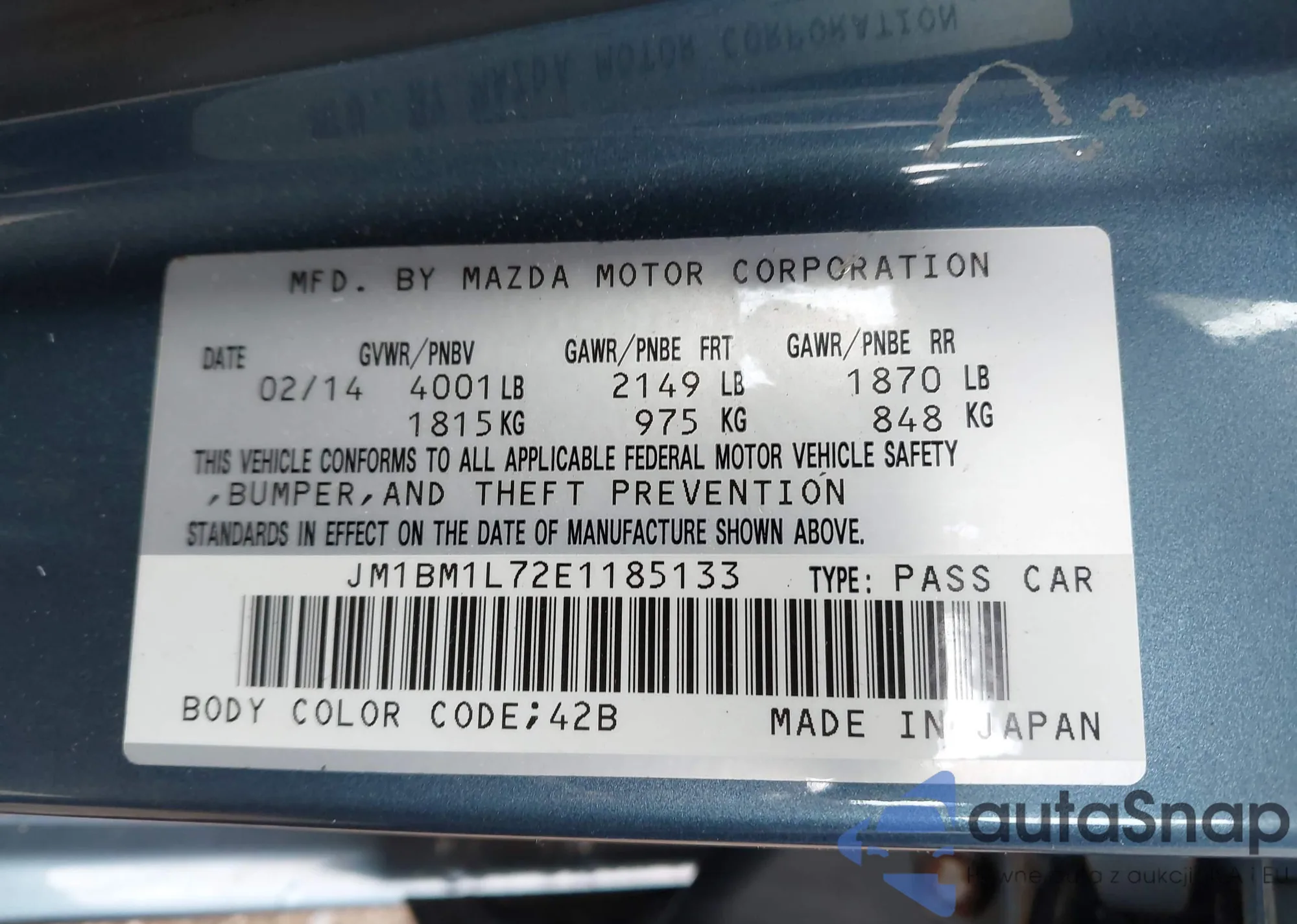 VIN: JM1BM1L72E1185133