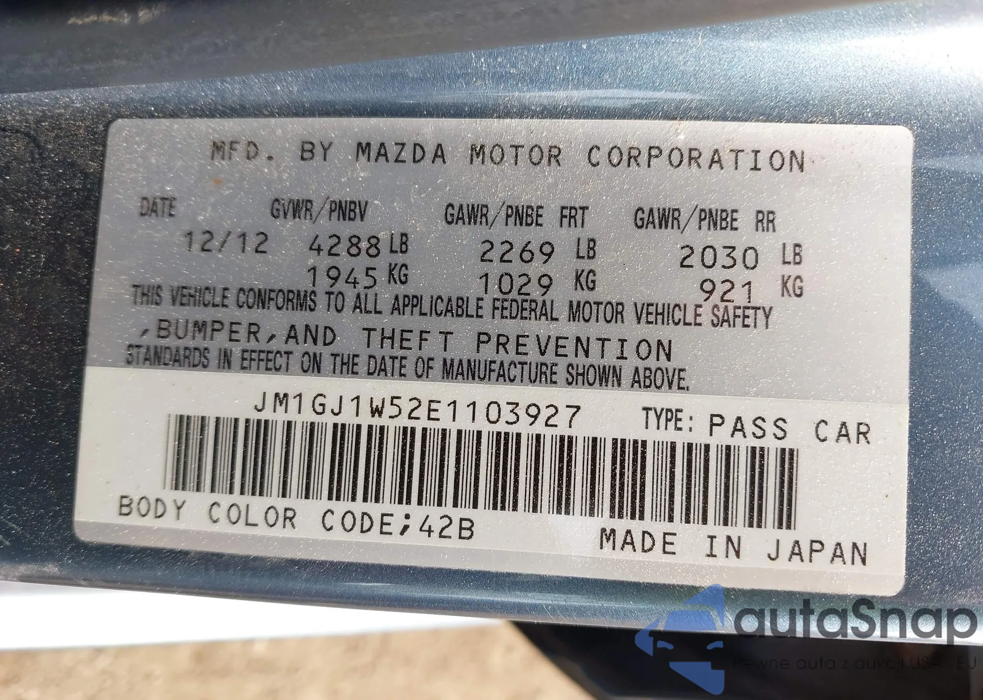 VIN: JM1GJ1W52E1103927
