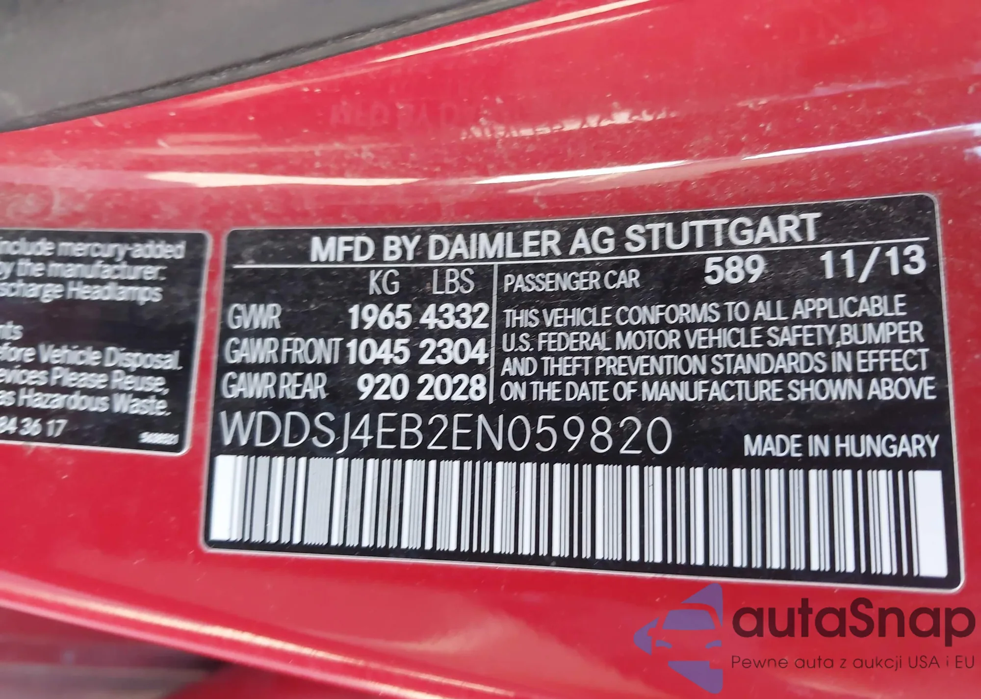 • VIN: WDDSJ4EB2EN059820