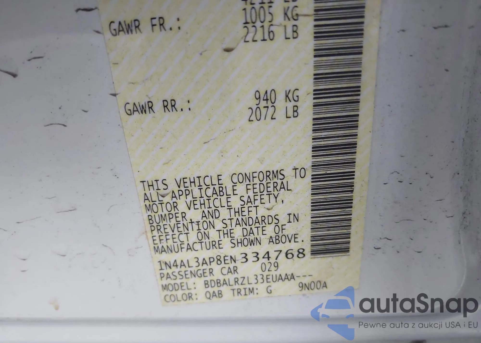Samochód Nissan Altima 2014 (VIN 1N4AL3AP8EN334768) nie był wcześniej licytowany. Dokumenty są czyste, przebieg odpowiada lub jest niższy niż średnia rynku. Sprzedaje go firma ubezpieczeniowa – polecamy zakup. Dostawa do portu zajmie ok. 6–8 tygodni.