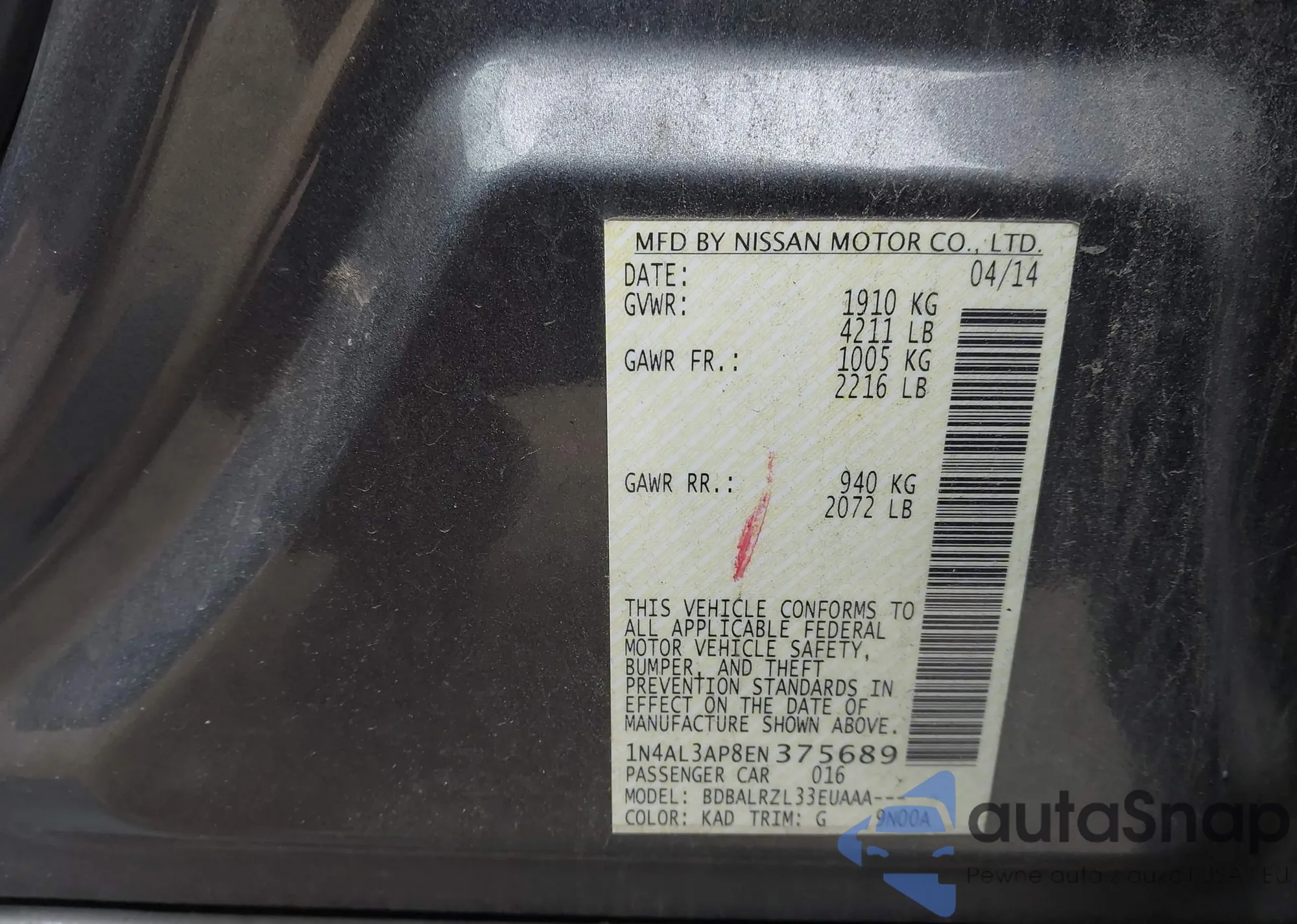 VIN: 1N4AL3AP8EN375689