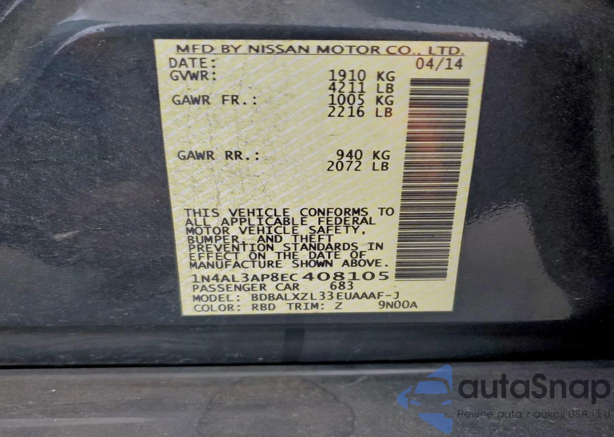 VIN: 1N4AL3AP8EC408105