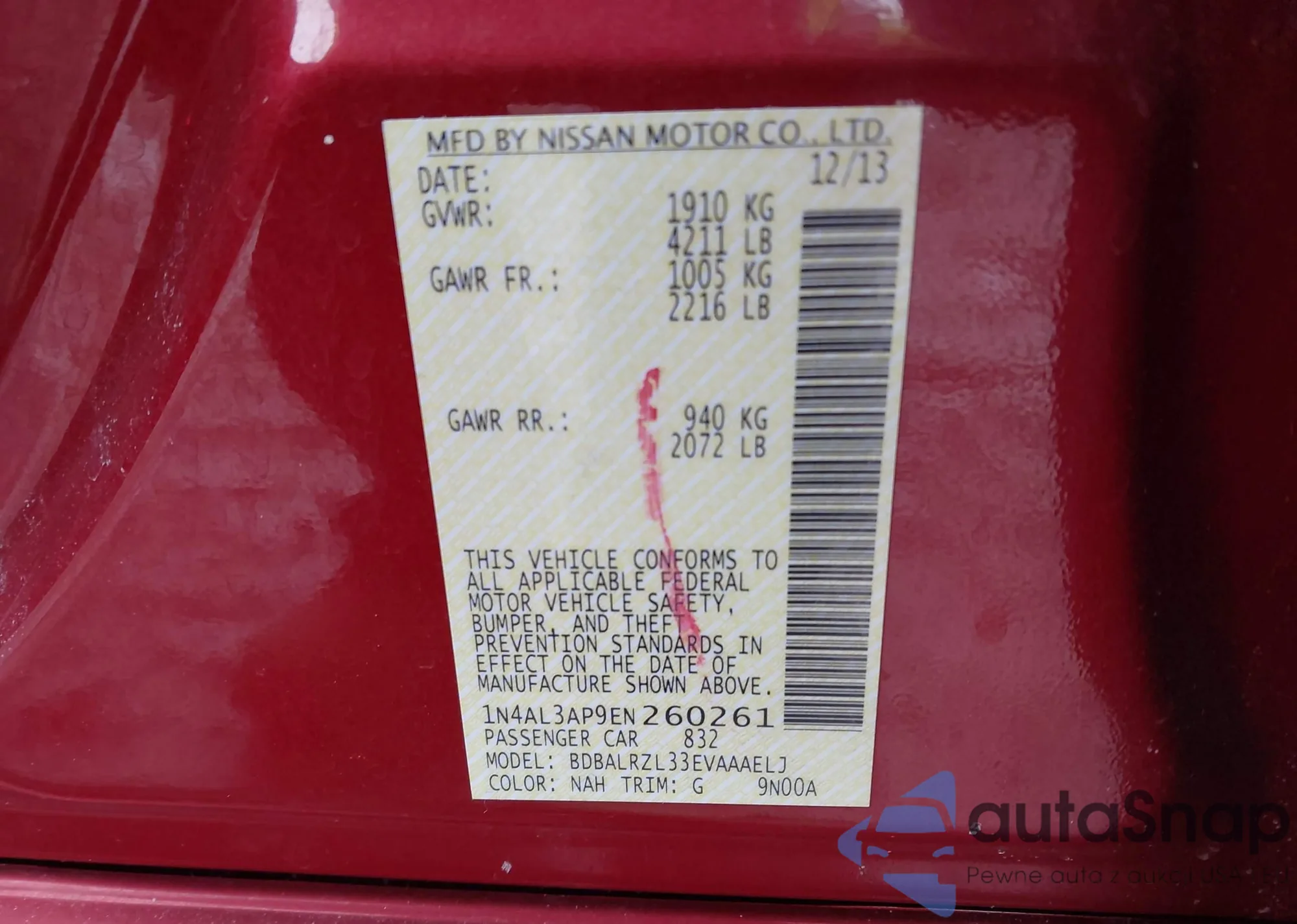 VIN: 1N4AL3AP9EN260261