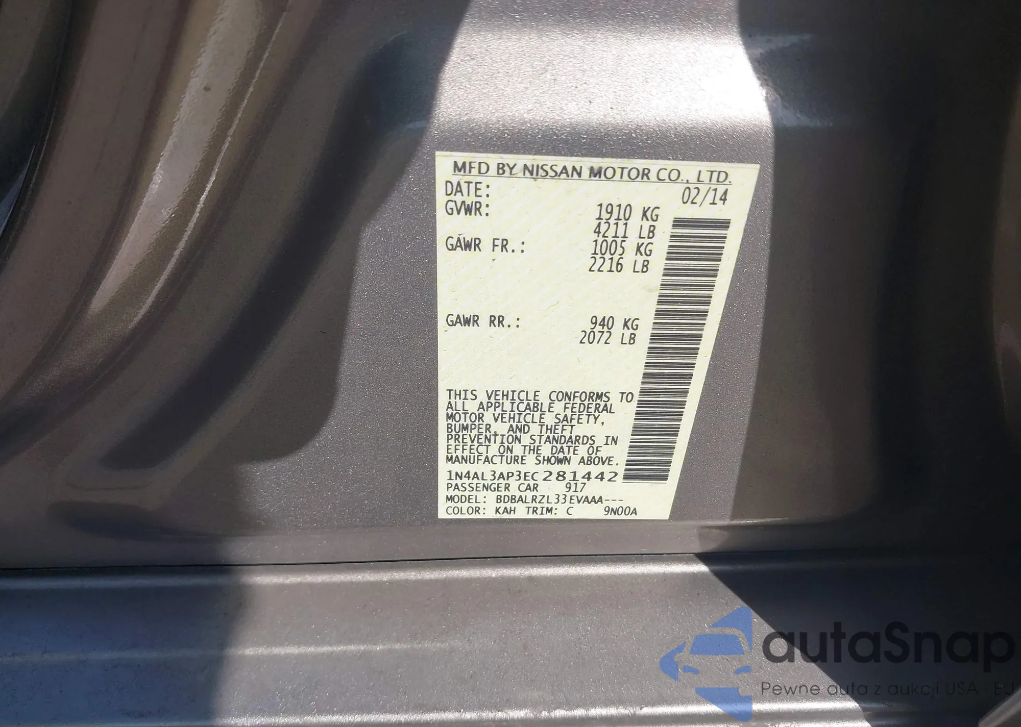 VIN: 1N4AL3AP3EC281442