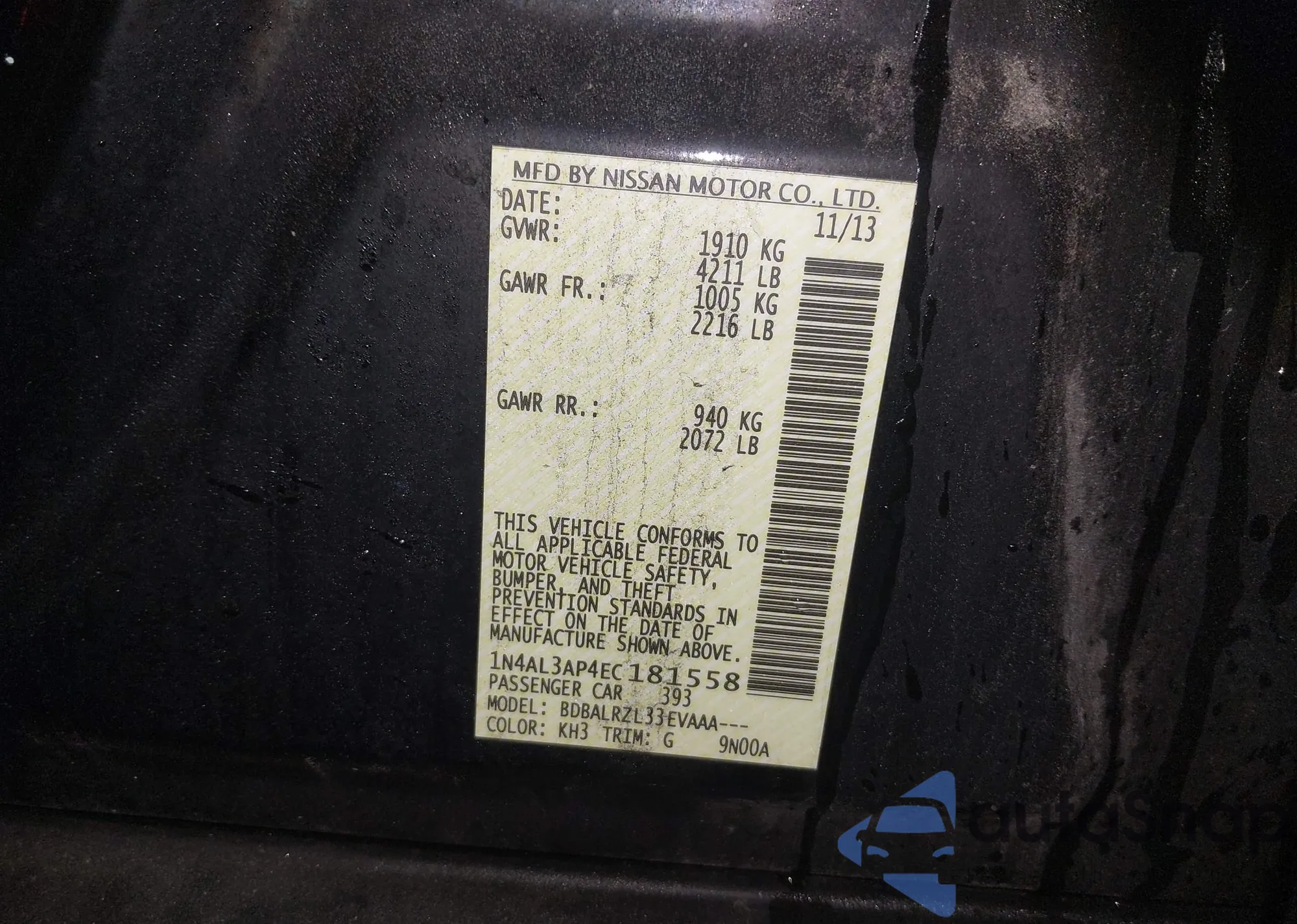 VIN: 1N4AL3AP4EC181558