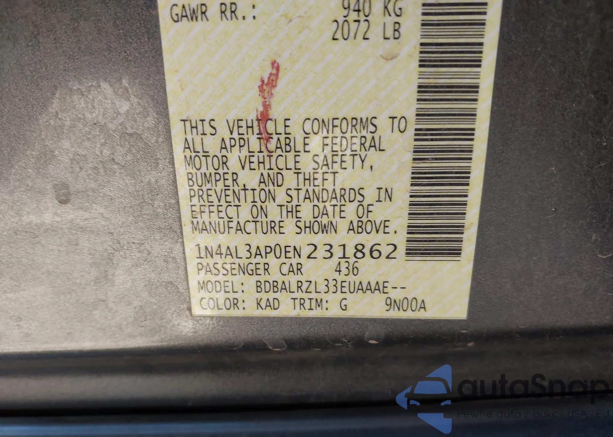 • VIN: 1N4AL3AP0EN231862
