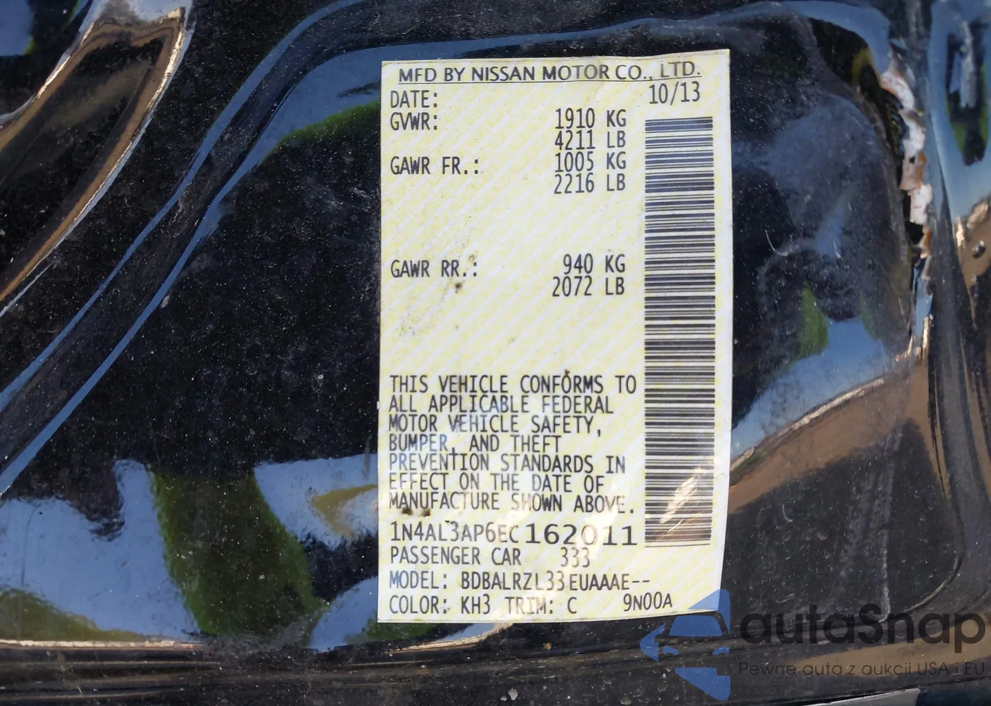 VIN: 1N4AL3AP6EC162011