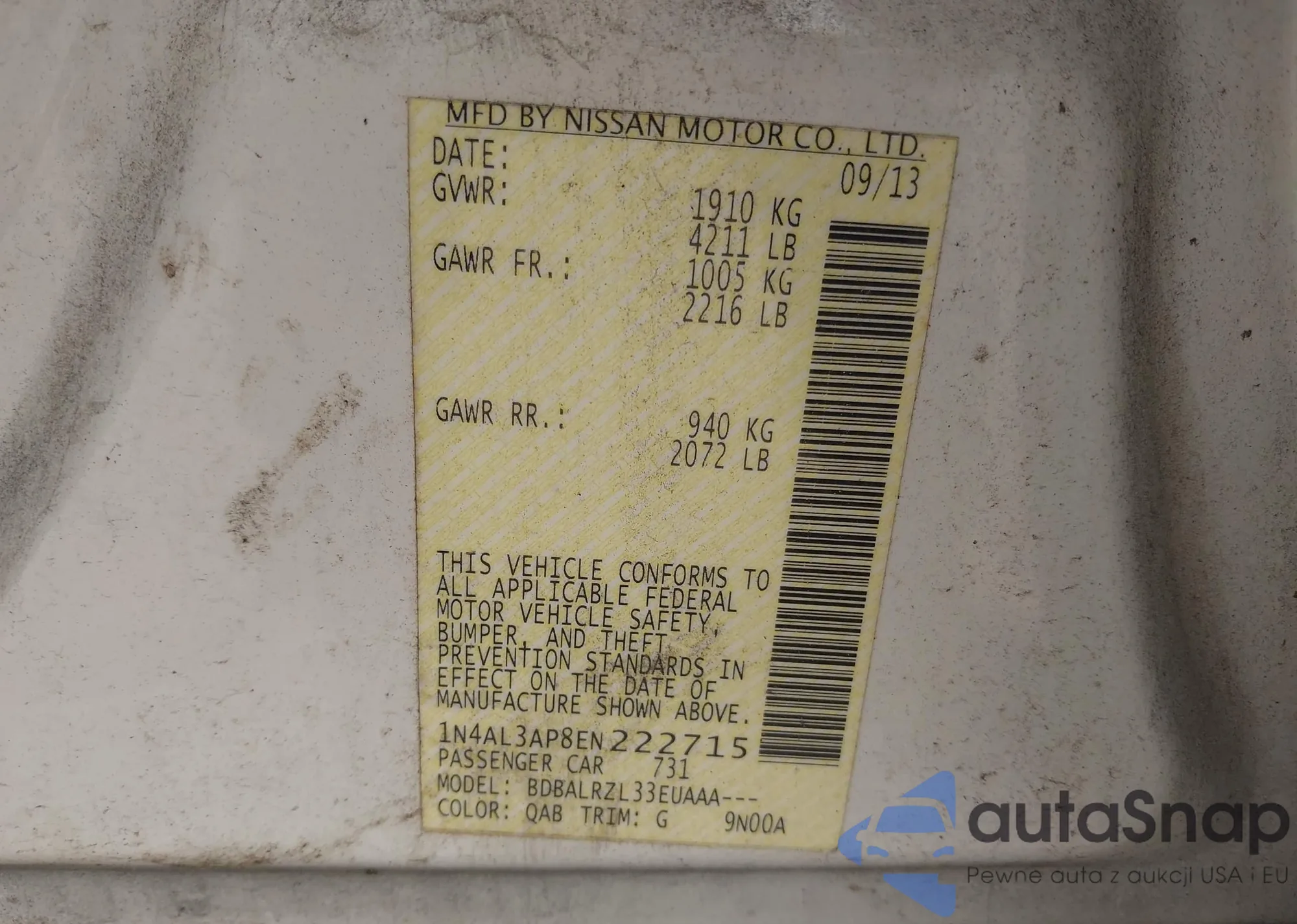 • VIN: 1N4AL3AP8EN222715