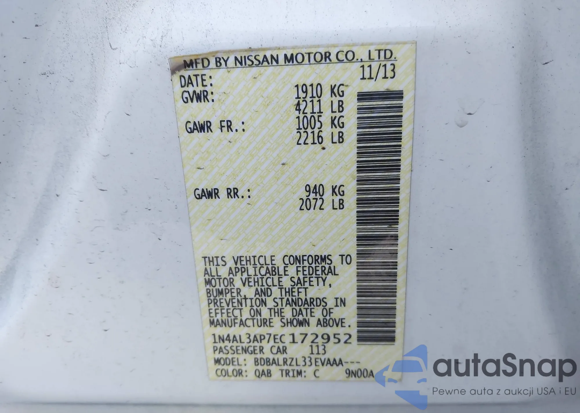 VIN: 1N4AL3AP7EC172952
