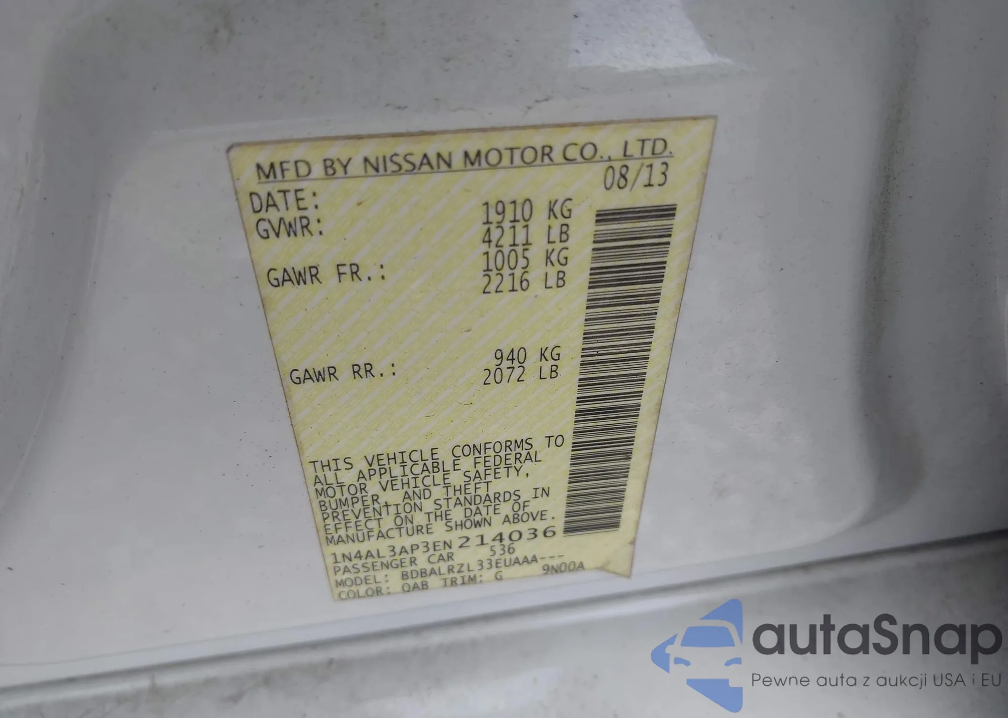VIN: 1N4AL3AP3EN214036