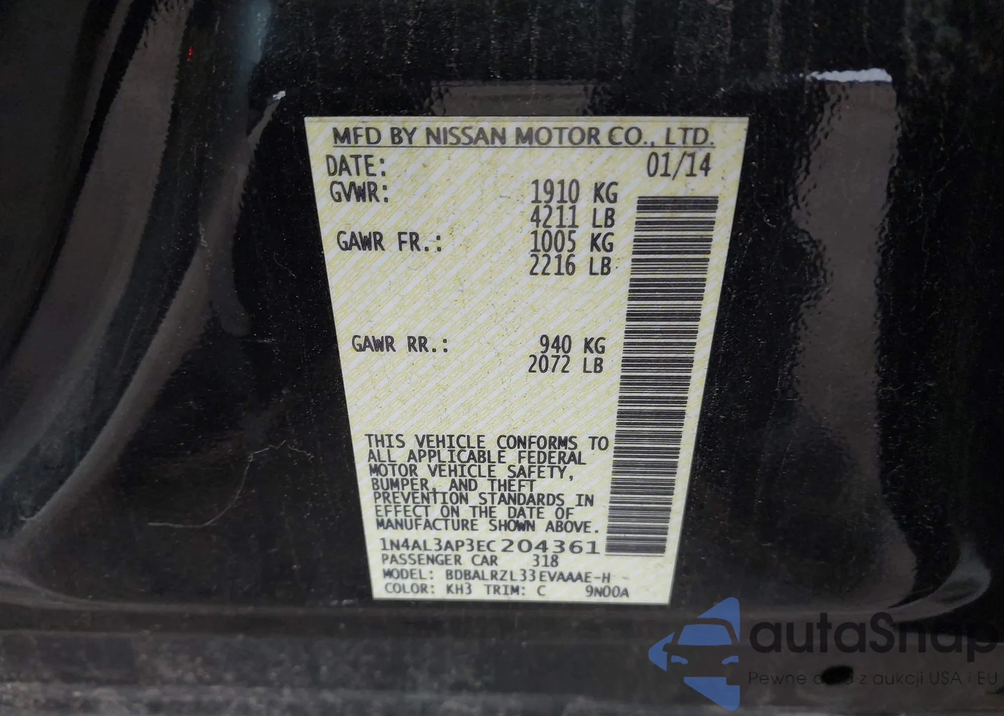 VIN: 1N4AL3AP3EC204361