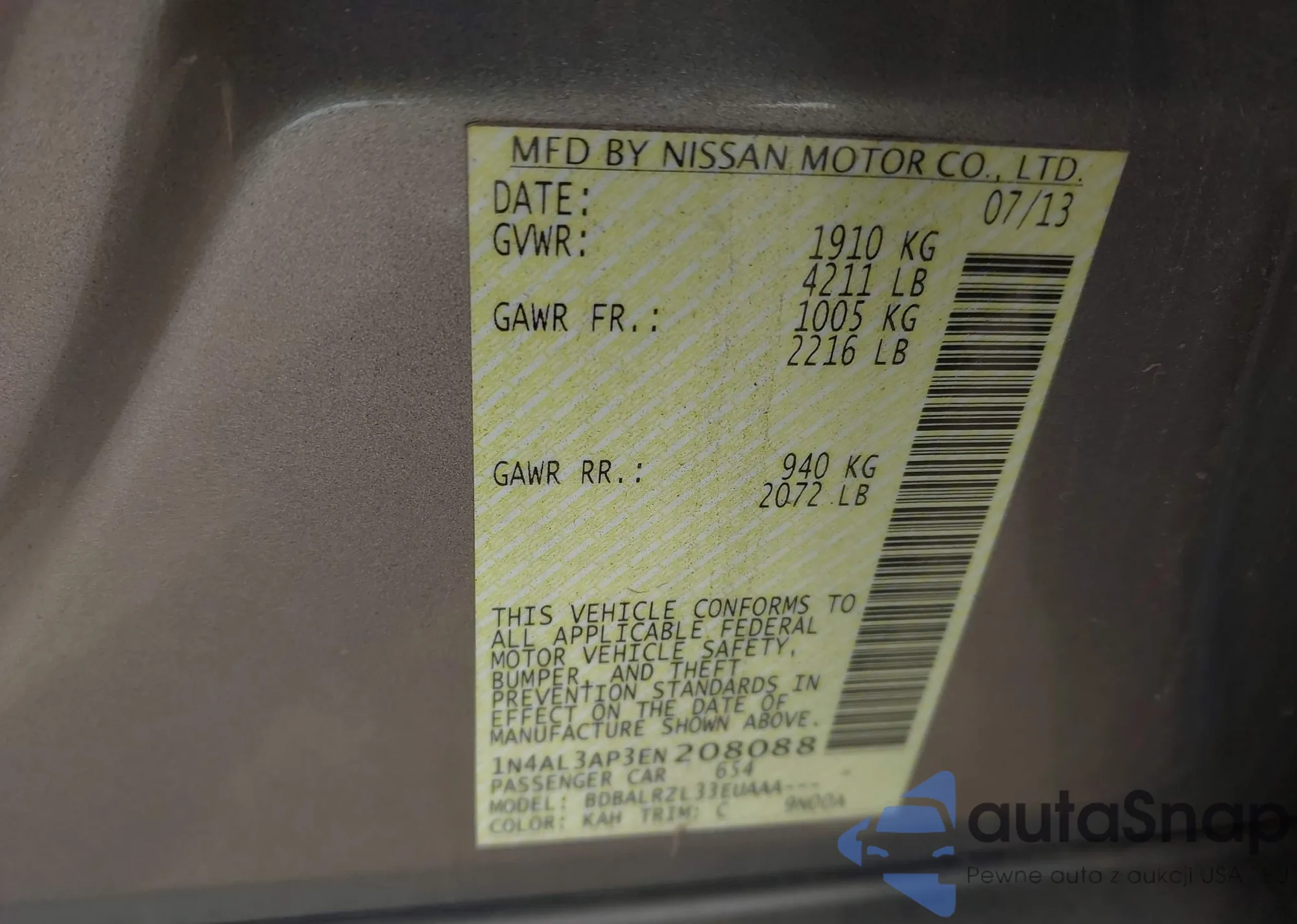 VIN: 1N4AL3AP3EN208088